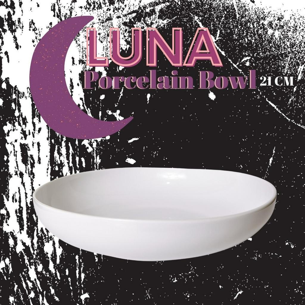 LUNA Porcelain Bowl 21 cm | Mangkok Makan Porselin Cantik | Mangkok Saji Keramik | Mangkok Ceper