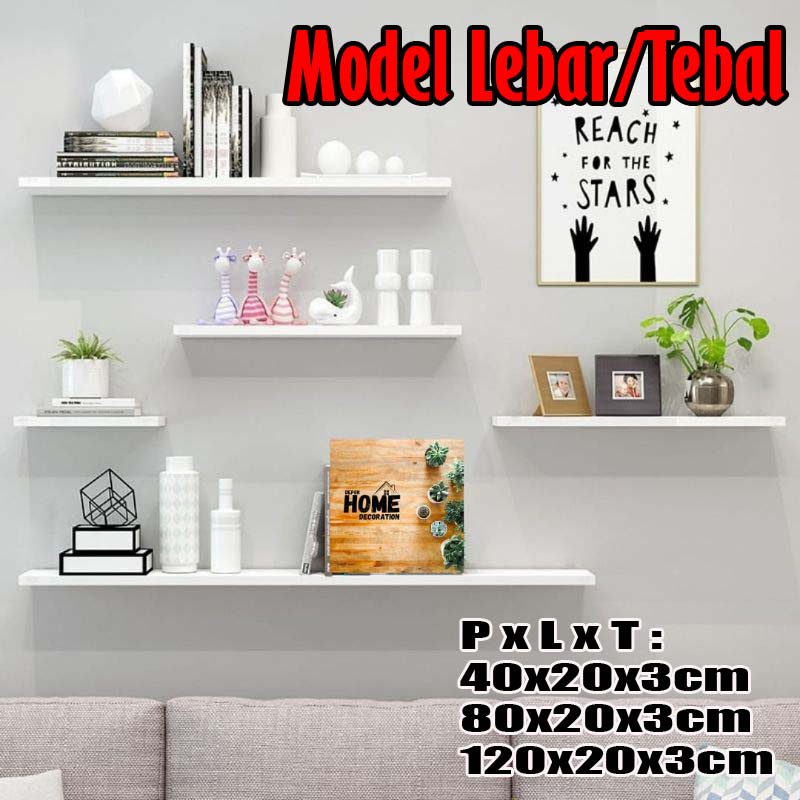 (MODEL LEBAR/TEBAL 20x4cm)Rak Dinding Rak Kayu Ambalan Rak Hias Dinding-DEKOR88