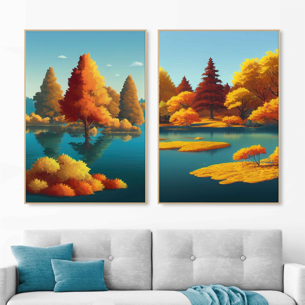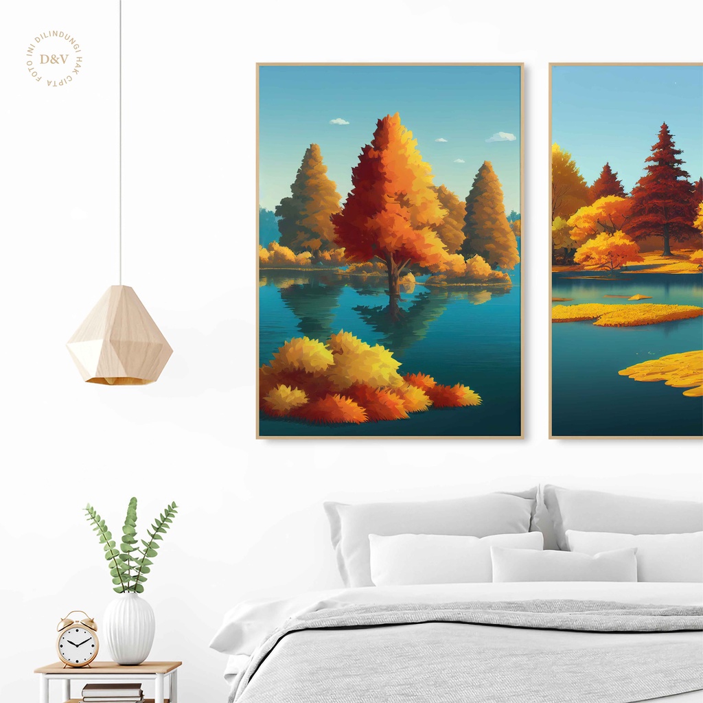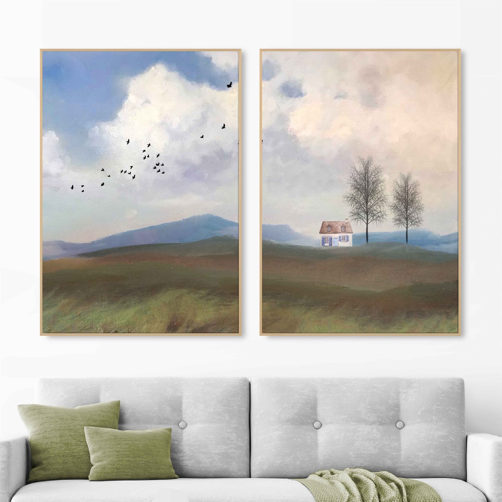 Hiasan Dinding Ruang Tamu Minimalis 80x57cm & 40x57cm INCLUDE FRAME - Wall Decor Panorama Blue And White Estetik Simple Design - Hiasan Dinding Pegunungan Biru - Wall Decor Ruang Tamu Kamar Pajangan Rumah Lukisan Canvas Rumah Home Decor Aesthetic