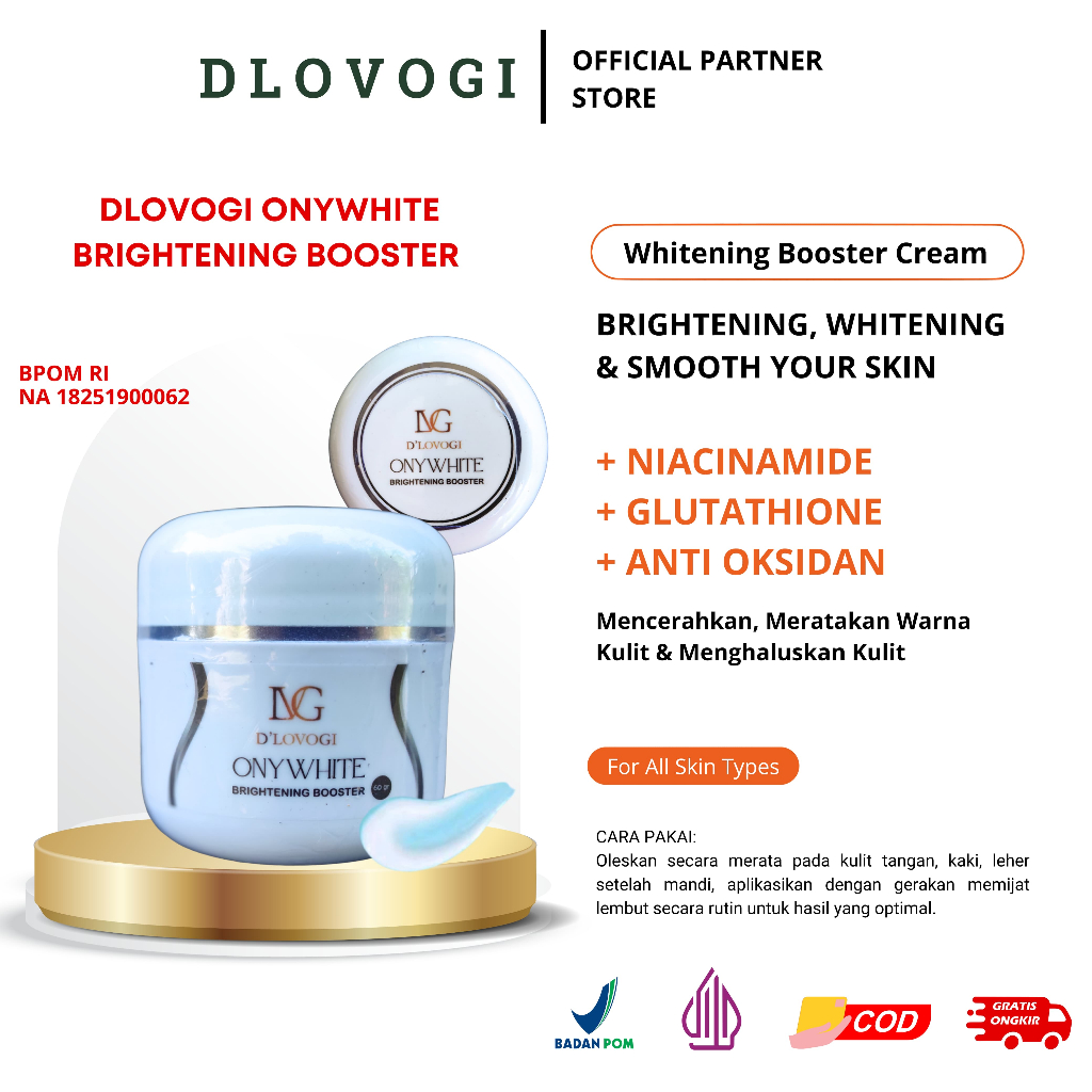 ONYWHITE WHITENING BOOSTER SKIN CREAM DLOVOGI BPOM CERAHKAN KULIT BADAN