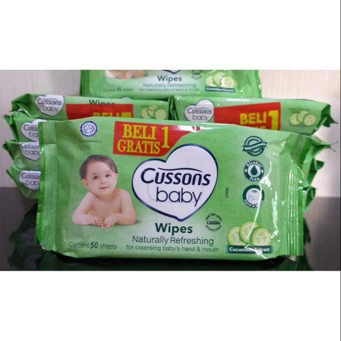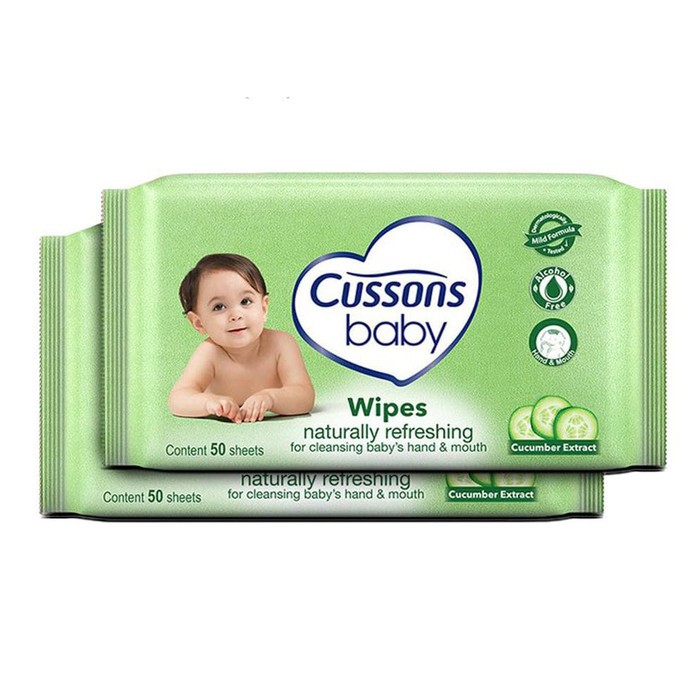 TISSU BASAH BAYI CUSSONS BABY WIPES NATURAL TIMUN BUNGKUS HIJAU ISI 50 x 2PCS