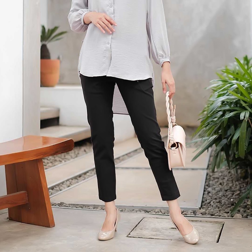 Ankle Pants Celana Panjang Wanita Slimfit Katun Stretch