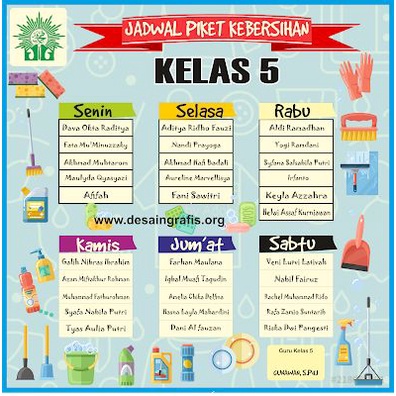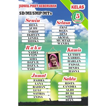 CETAK Jadwal Pelajaran/Piket Untuk SD/MI + NAMA SISWA (Baca Deskripsi)