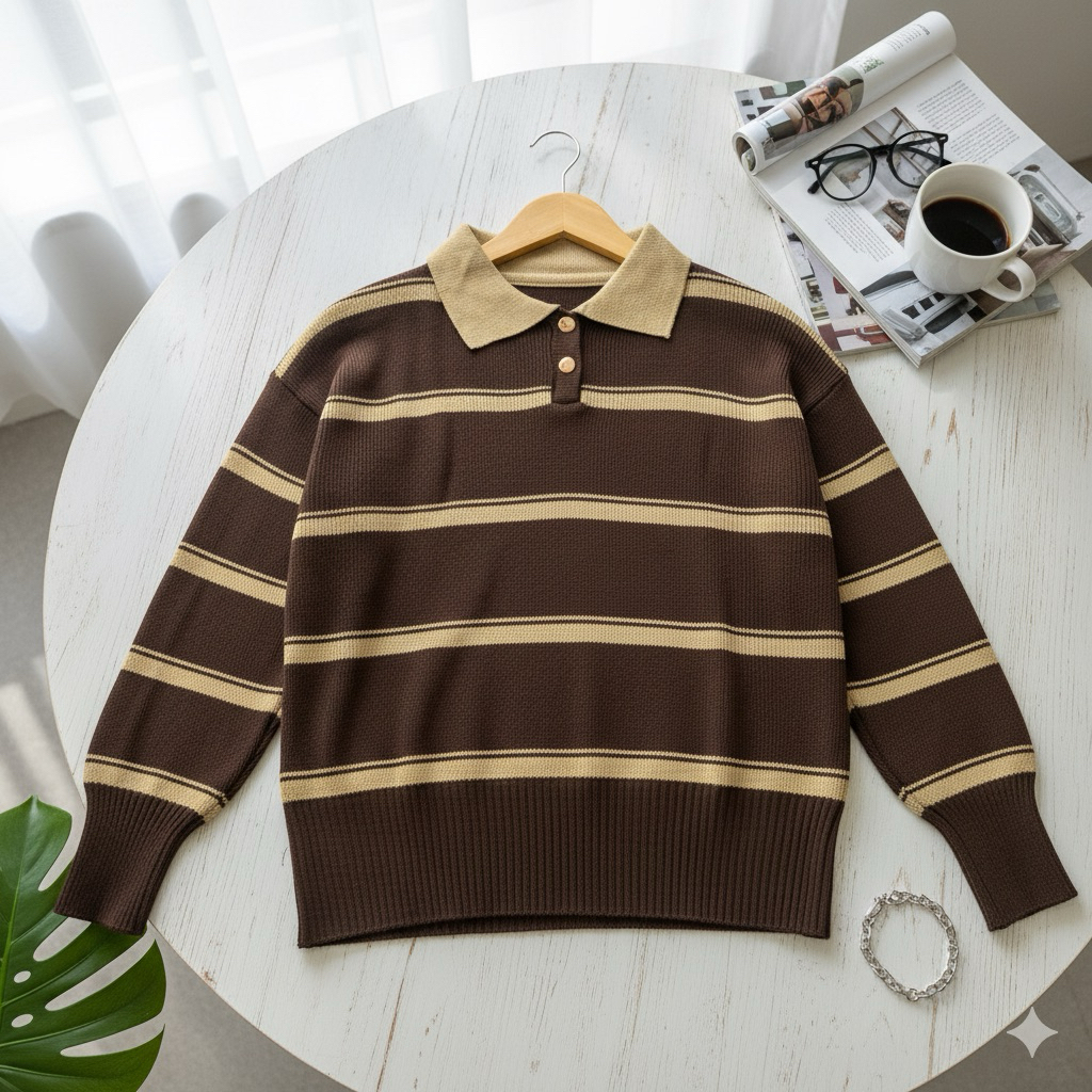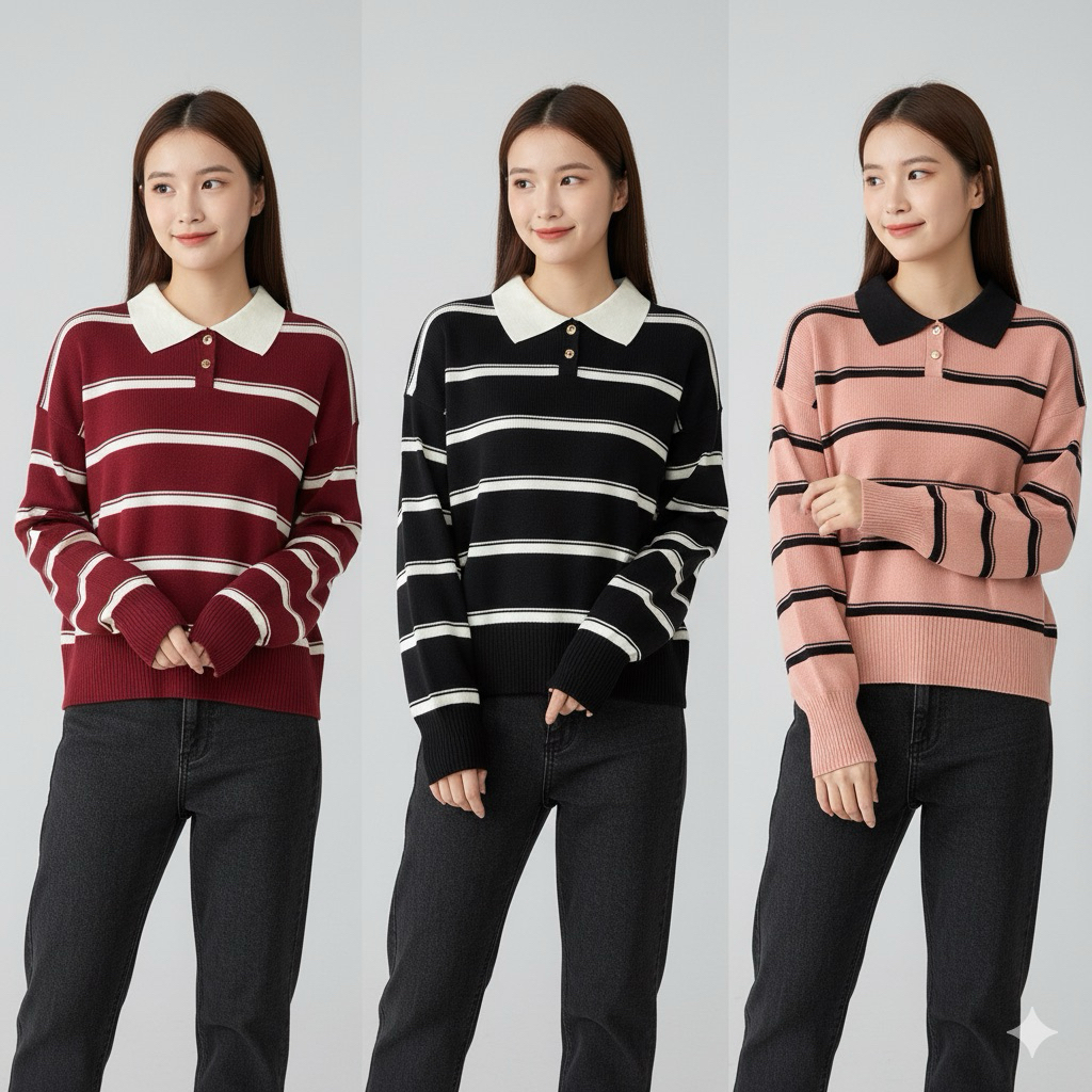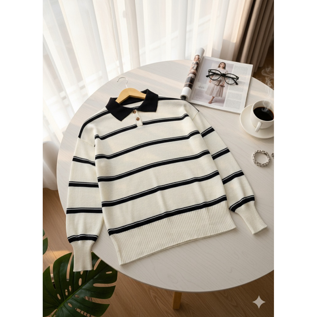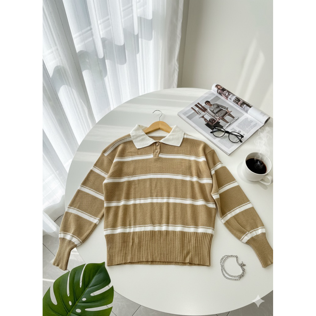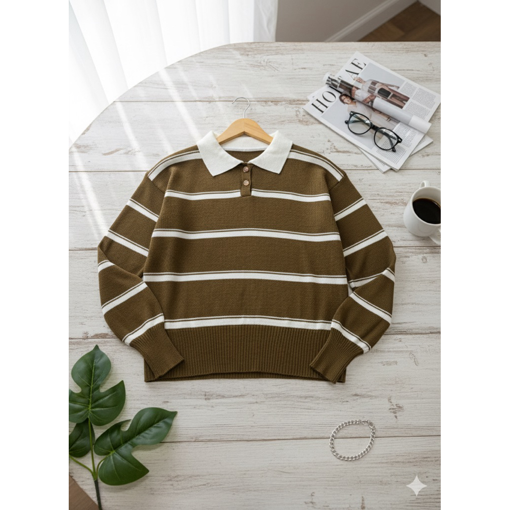Sweater Cardigan Rajut Wanita korean style motif Stripe Knitwear outer Atasan Premium