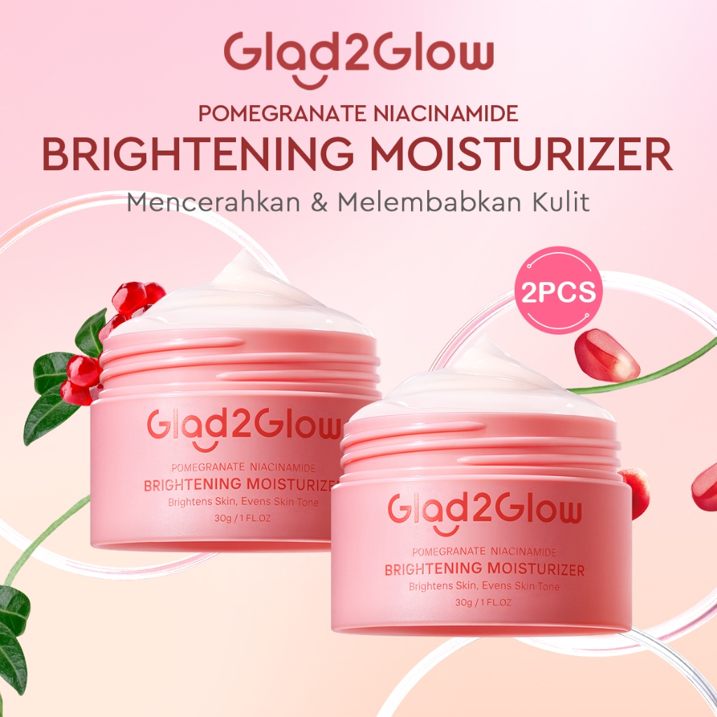 Glad2Glow Pomegranate Niacinamide Brightening Moisturizer Mencerahkan Pemutih Kulit Gel Pelembab Bercahaya Krim Siang dan Malam Perawatan Kulit Ekstrak DelimaPelembab Esensi Wajah Perawatan Kulit g2glow official store