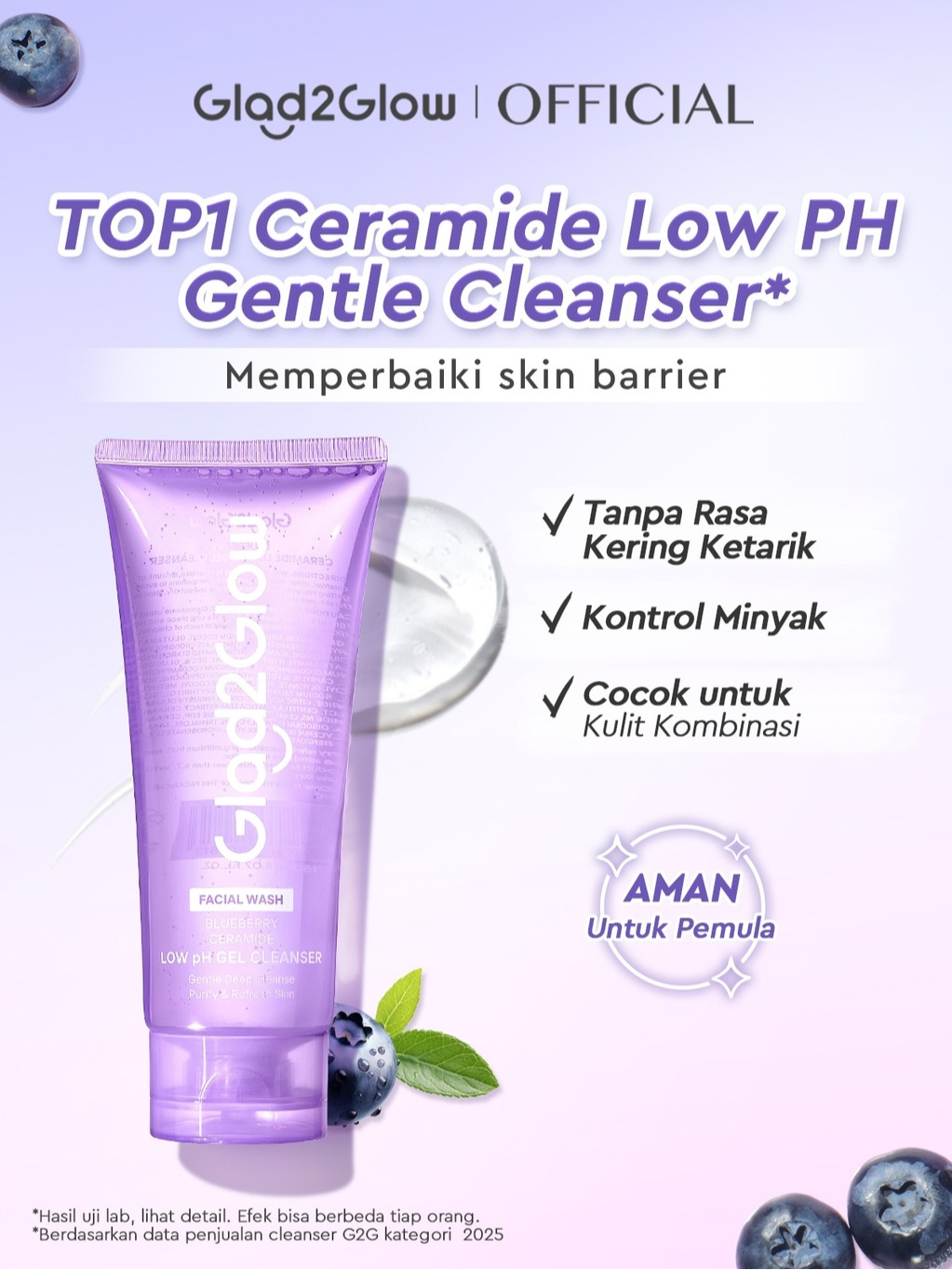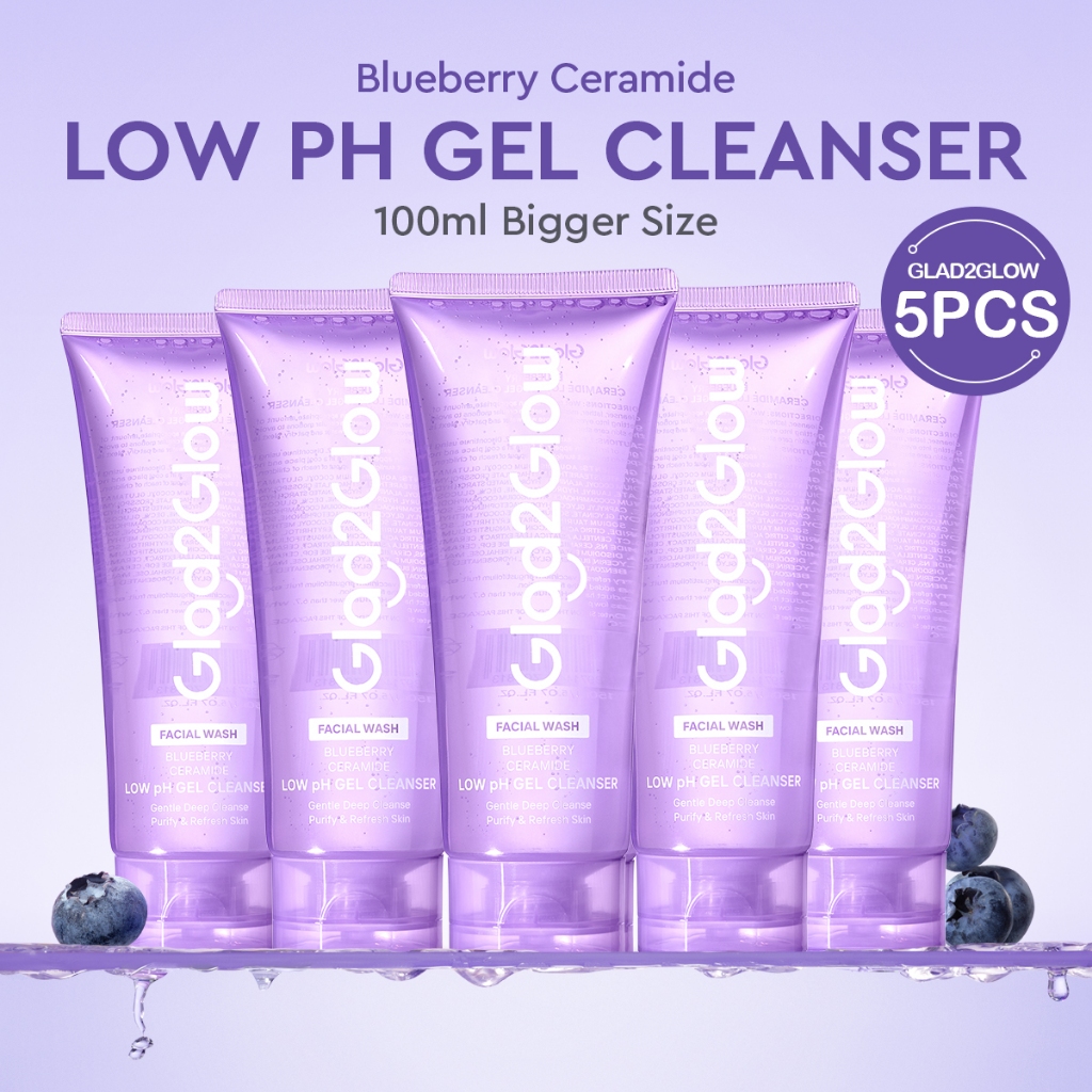 [BUY 100ml Save 30%]Glad2Glow Blueberry Ceramide Low pH Gel Cleanser Gentle skin Facial Wash oil control skincare pembersih wajah sabun cuci muka face wash micellar water g2glow official store