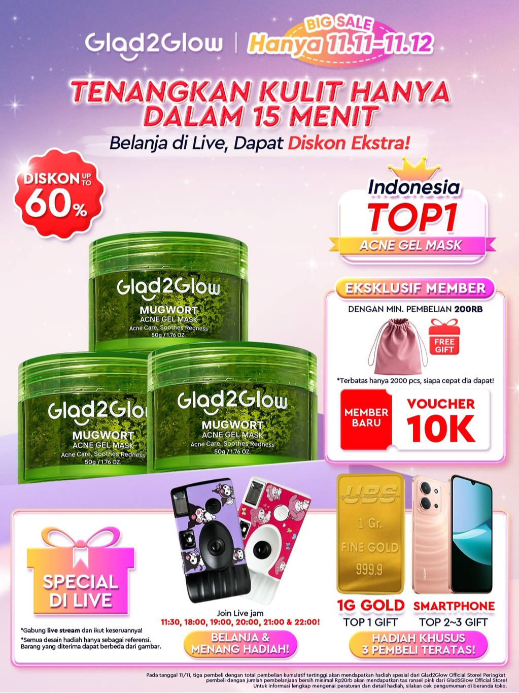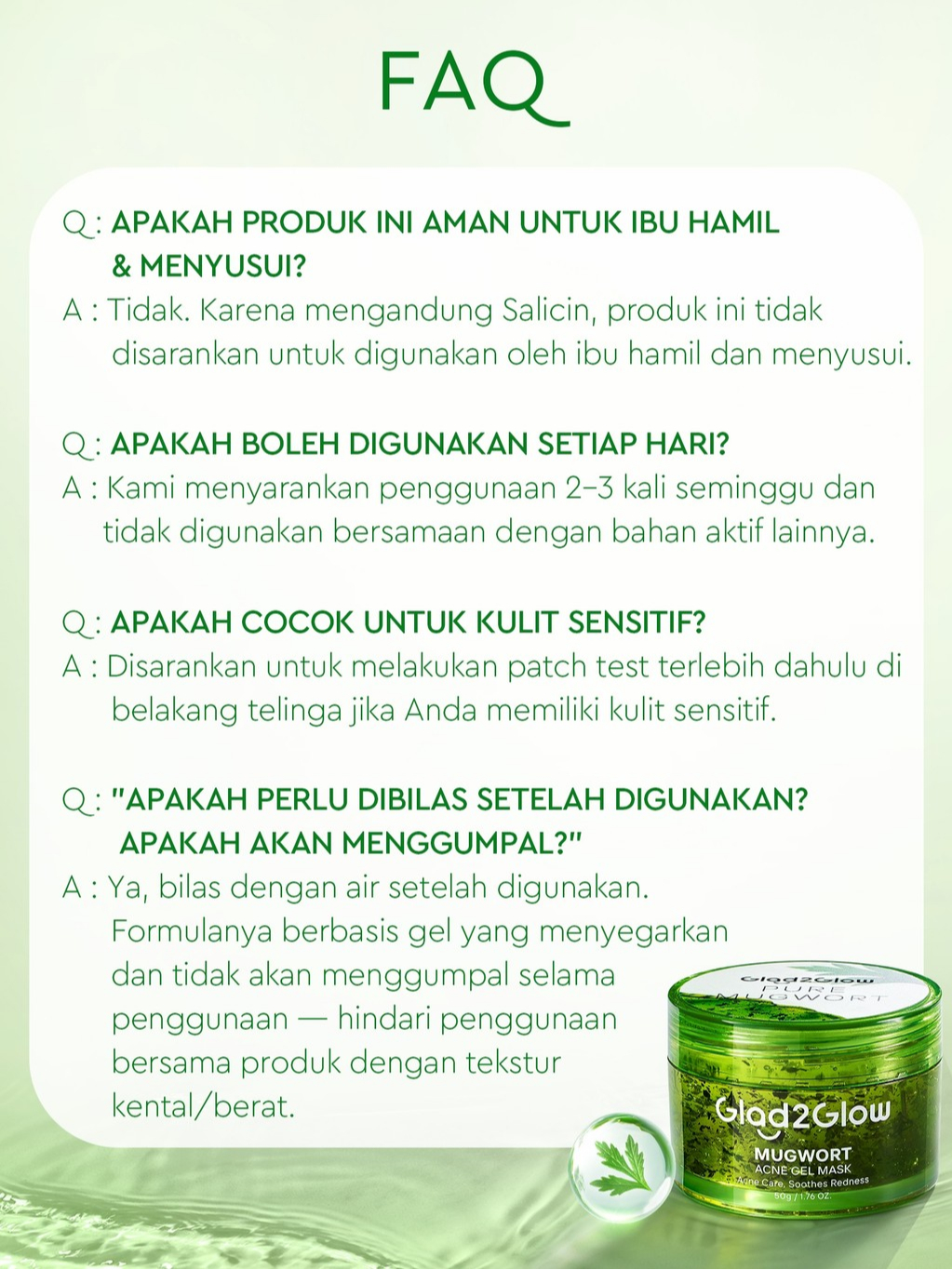 Glad2Glow Mugwort Acne Gel Mask 50g Masker Wajah Masker Komedo dan Pori Pori Wajah Masker Mask Sleeping Mask Sheetmask Clay Masker Jerawat Masker Clay Mask Mugwort Masker Hijau Masker Organik Gel Masker G2G masker wajah mencerahkan G2glow Official