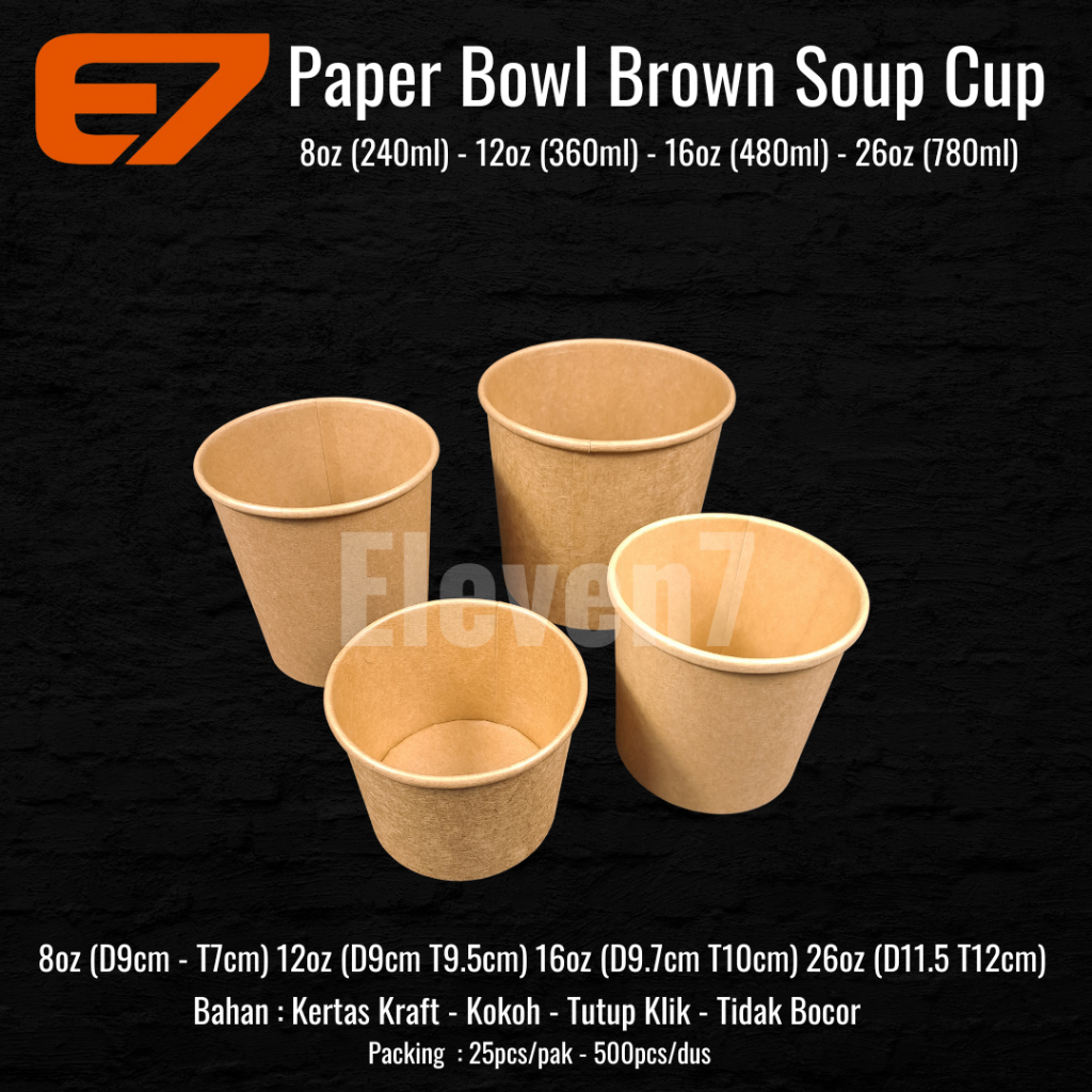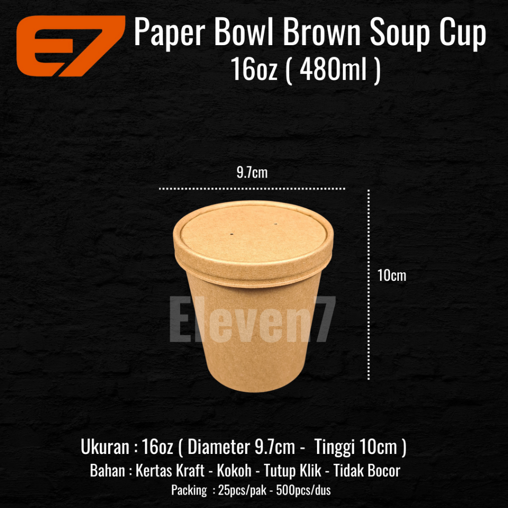 Paper Cup Brown Kraft 16oz + Lid/tutup - Soup Cup, Ice Cream Cup Gelas