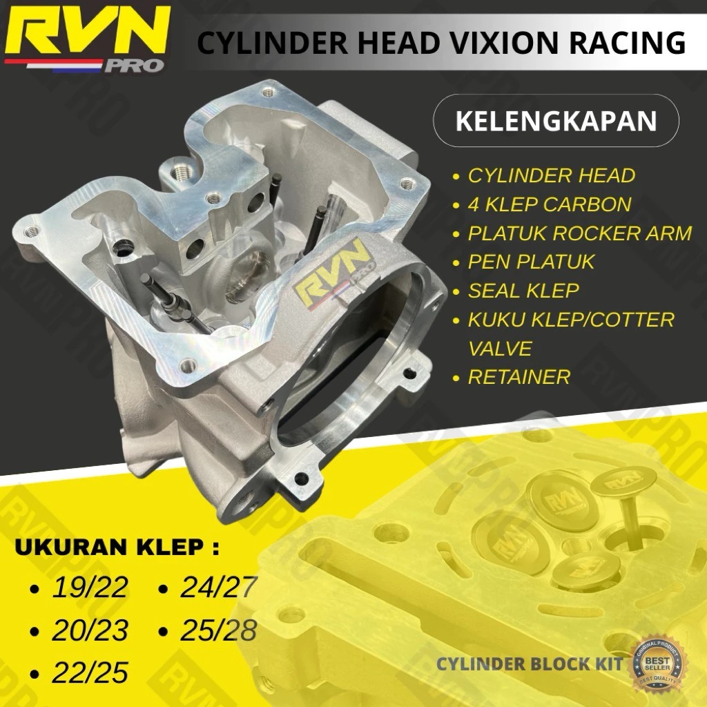 BLOK HEAD CYLINDER HEAD RVN RACING JUPITER MX NEW MX LAMA 4 SPEED 5 SPEED BISA UNTUK MXKING MX KING 150 VIXION NEW NVA NVL R15 V2 XABRE KLEP 19/22 20/23 22/25 24/27 25/28 ORIGINAL RVN RACING