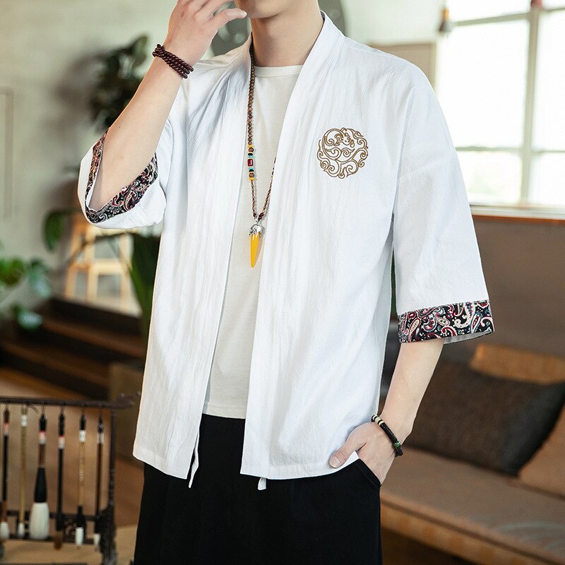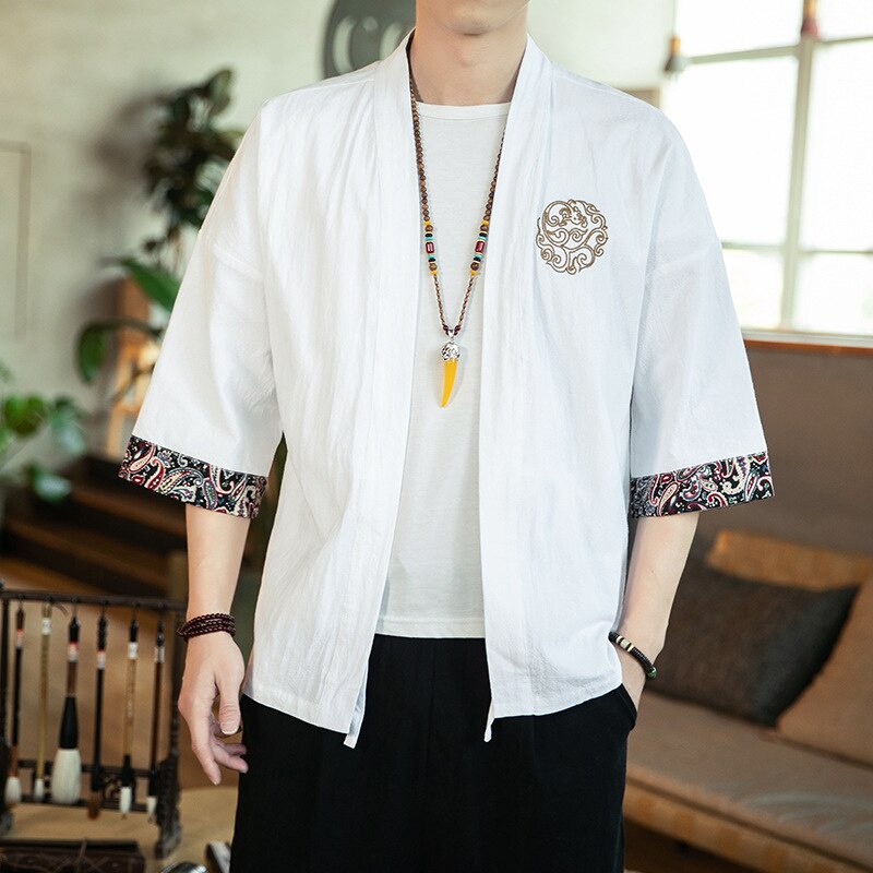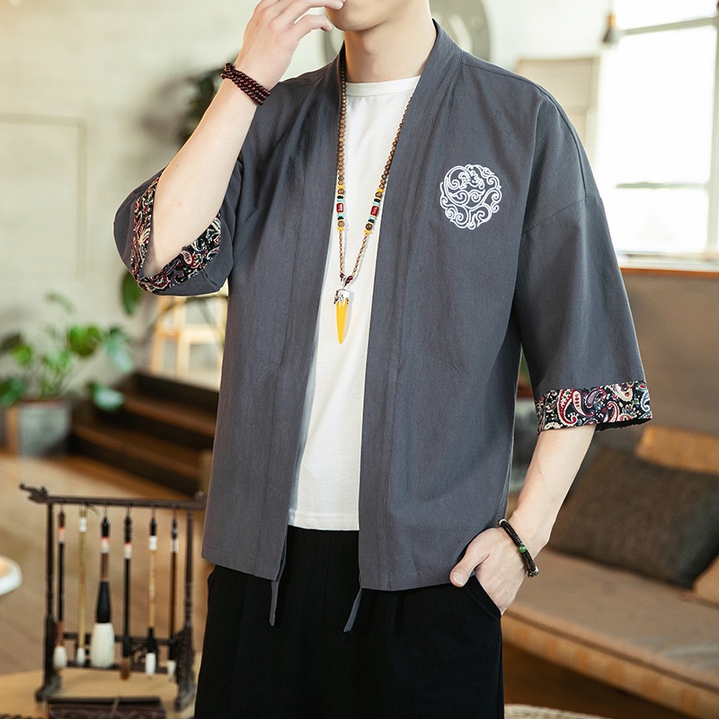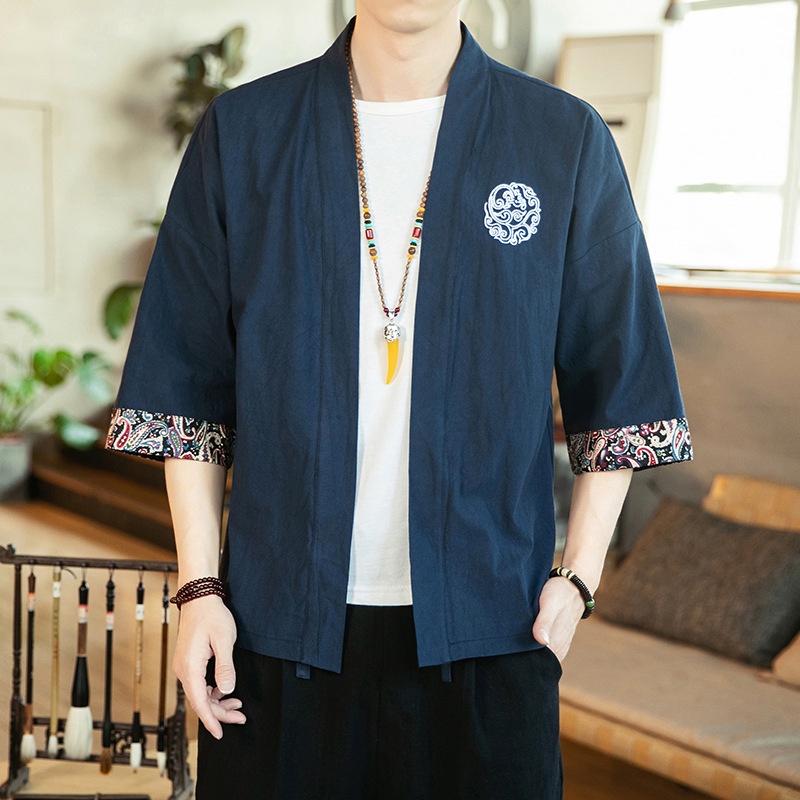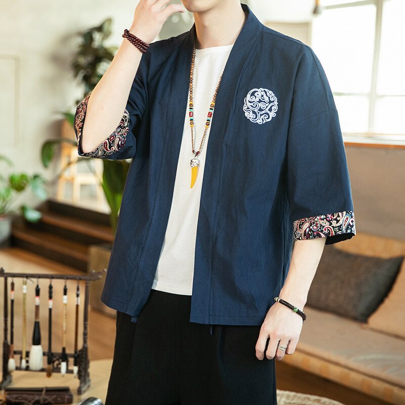 Kimono Cardigan Men Japanese Kimono Traditional Beach Thin Holiday Asian Clothes Polyester Premium