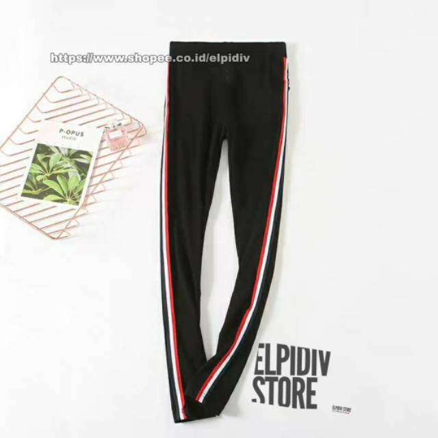 Legging List Putih Bahan PREMIUM/ Legging Garis Putih/ Korean list style