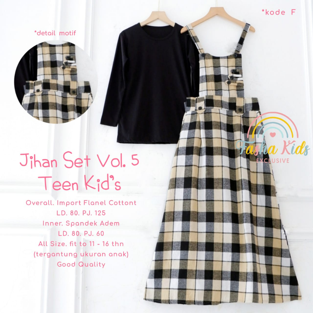 JIHAN SET VOL. 5 TEEN KIDS SETELAN OVERALL ANAK USIA 10-17 SETELAN BAJU ANAK REMAJA OVERALL MOTIF KOTAK KOTAK DAN MANSET SET DRESS ANAK MODEL KEKINIAN MOTIF KOTAK KOTAK