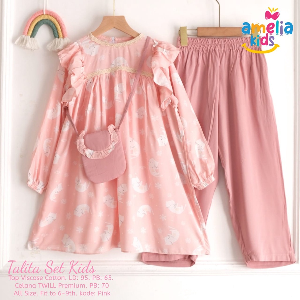 TALITA SET KIDS ORIGINAL BY FASHA SETELAN BAJU ANAK PEREMPUAN USIA 5-10 TAHUN FREE TAS ONESET KIDS KATUN VISCOSE MOTIF KEKINIAN SETELAN BAJU ANAK TUNIK DAN CELANA KULOT PANJANG