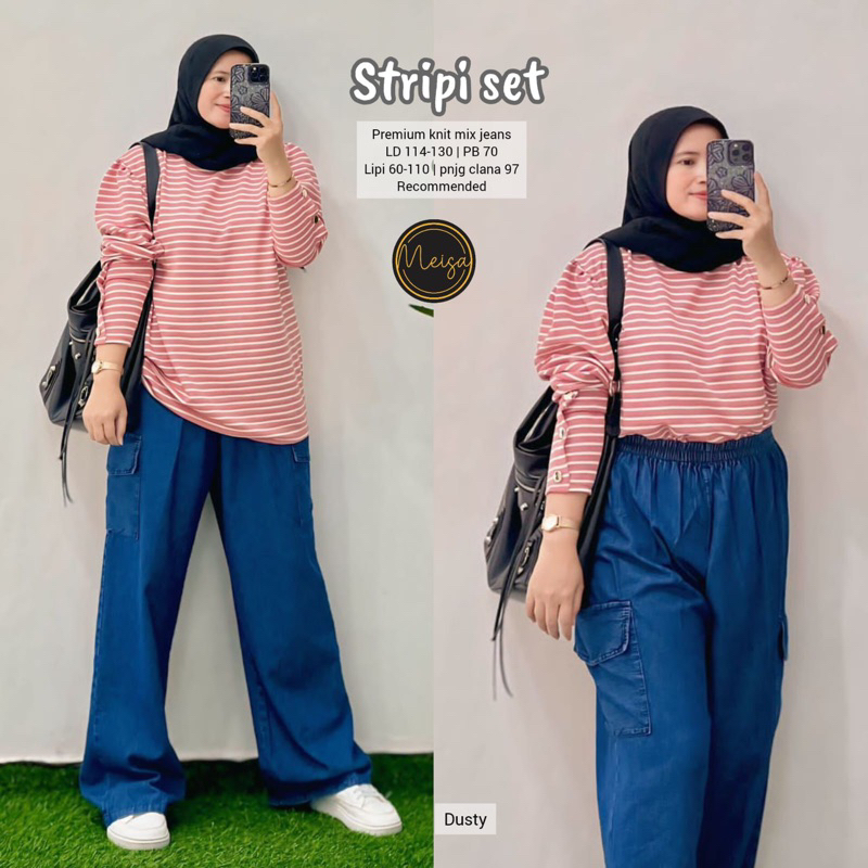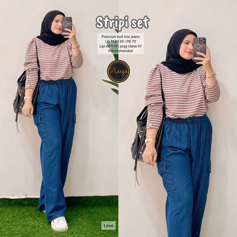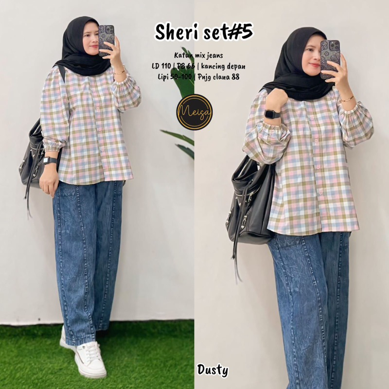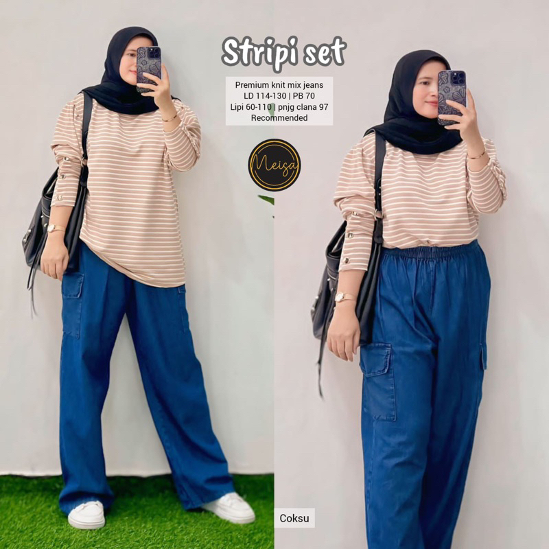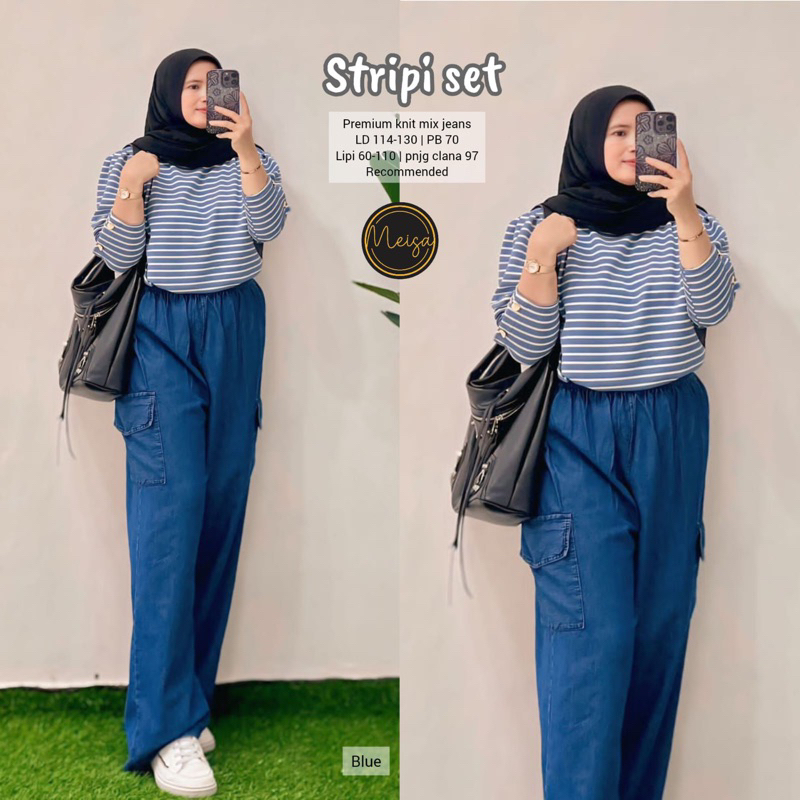 [[ New Arrival ]] Setelan Baju Wanita Blus dan Celana Jeans Sheri Set #5 #4 Farida Yumi Stripi Sunny Set by Meisa Oneset Katun Mix Jeans Setcel Jumbo Oversize One Set Viral Outfit CASUAL model Terbaru
