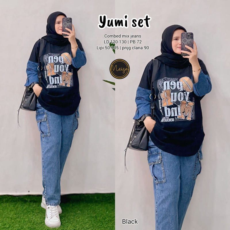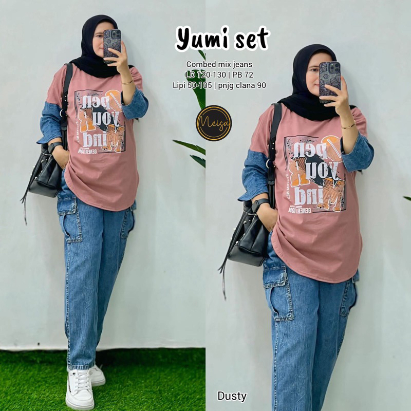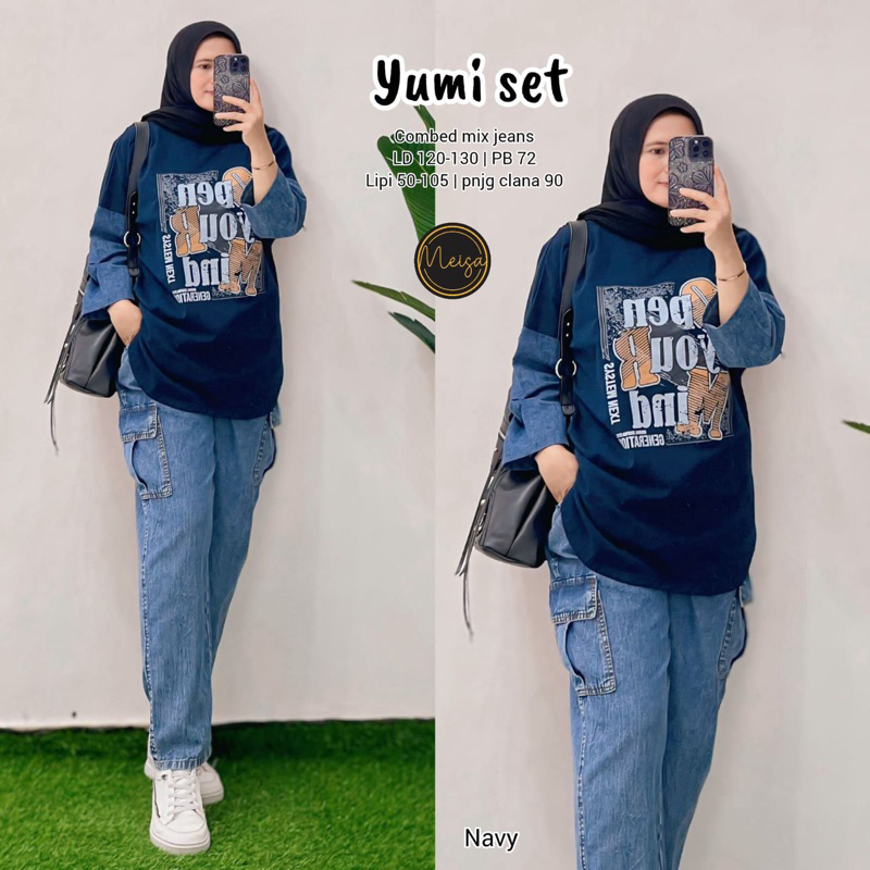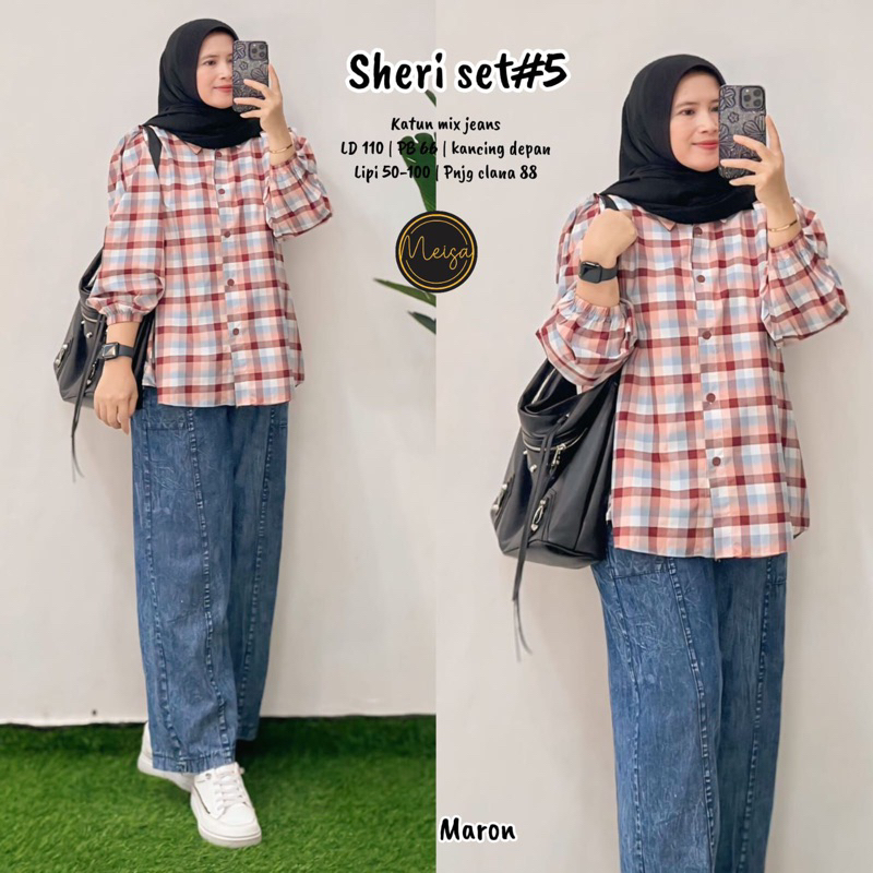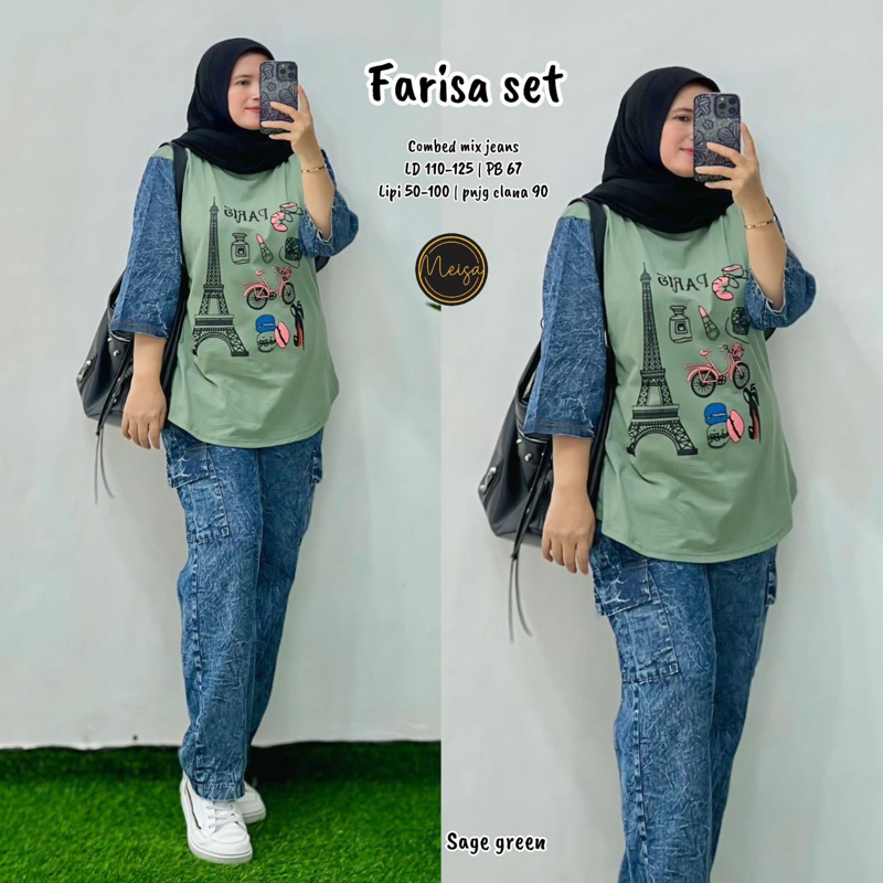 [[ New Arrival ]] Setelan Baju Wanita Blus dan Celana Jeans Sheri Set #5 #4 Farida Yumi Stripi Sunny Set by Meisa Oneset Katun Mix Jeans Setcel Jumbo Oversize One Set Viral Outfit CASUAL model Terbaru