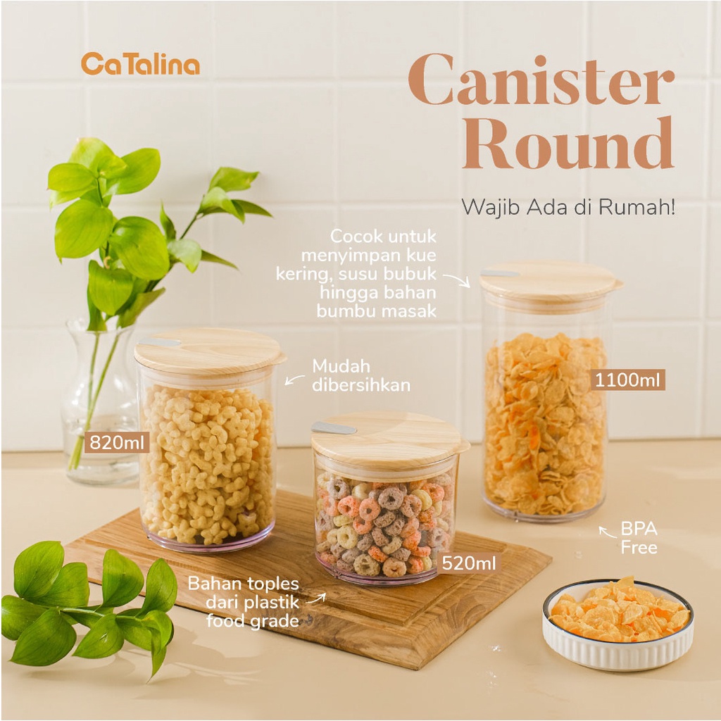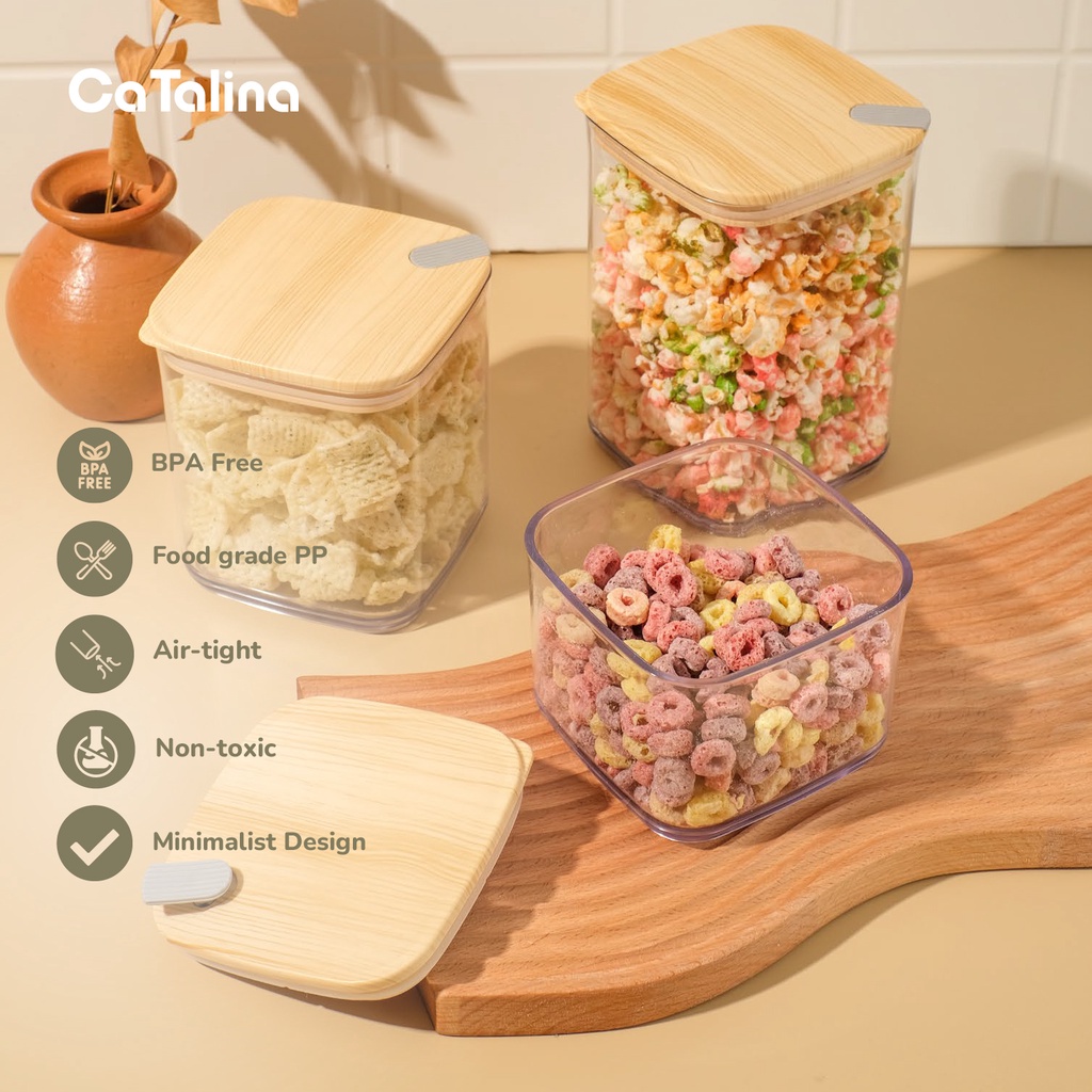 Toples Plastik Kedap Udara Tutup Motif Kayu Wadah Tempat Penyimpan Makanan Food Snack Container Aesthetic