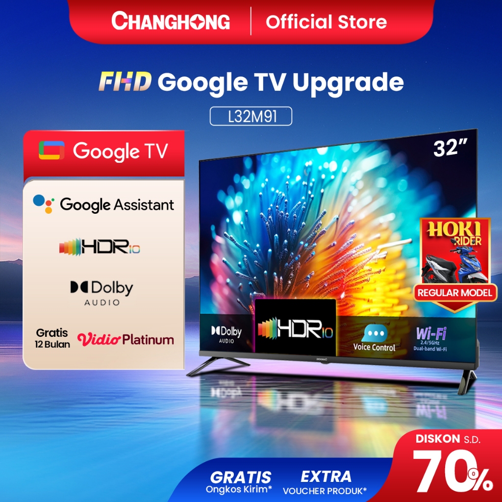 [Google TV 32 inch FHD] Changhong Dolby Audio Google Play Netflix Youtube Bluetooth USB Google Assistant Smart TV Digital TV Free Vidio (L32M91)
