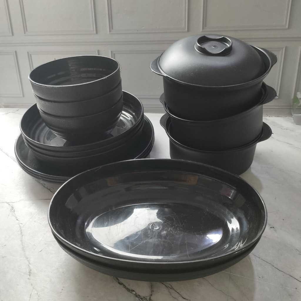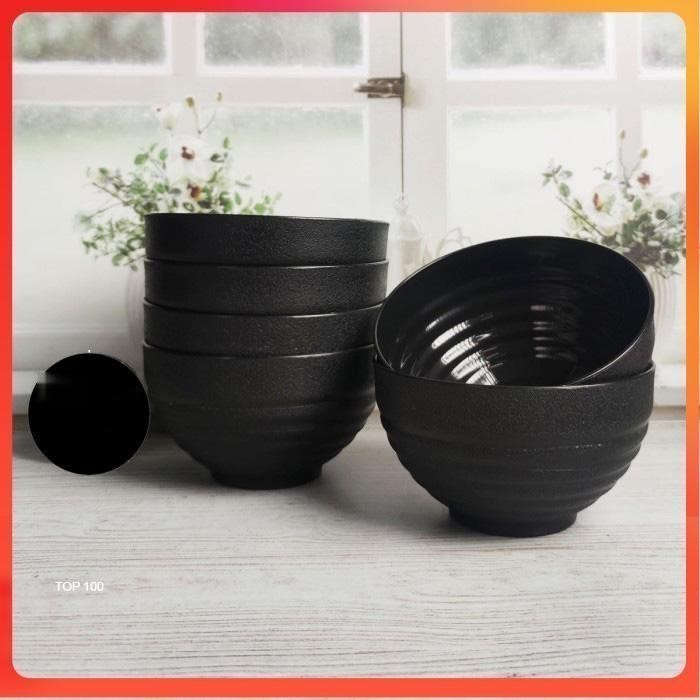 Set Ramen Hitam 15 Pcs Paket Ramen Jepang Piring Oval Hitam Warna Hitam Ramen Tutup Piring Makan Plastik Mangkok Ramen Bulat