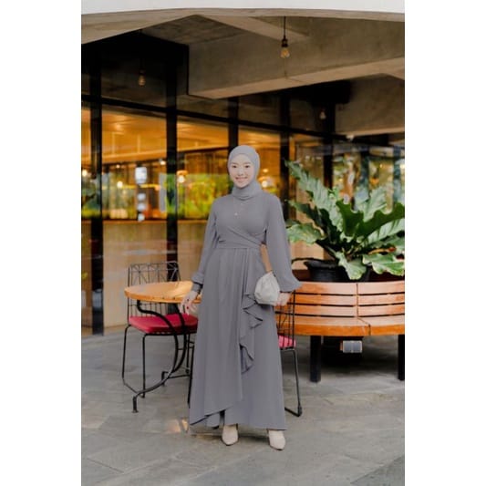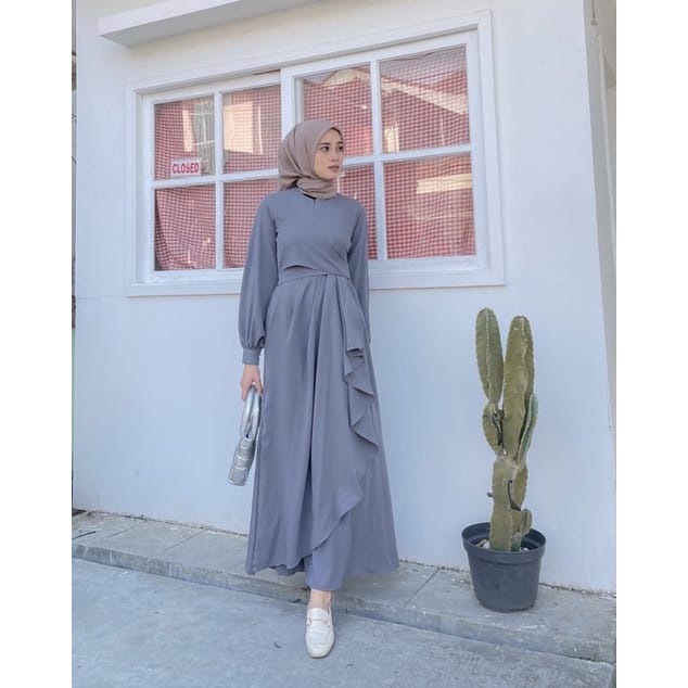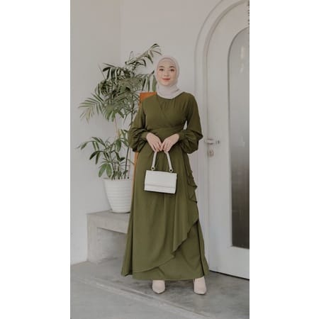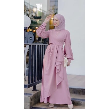 Belva set dress / dress kekinian / dress model terbaru / baju kondangan / outfit lebaran termurah Baju Dress Gamis Wanita Syari Busana Muslim Terbaru Modern Maxi Lengan Balon Outfit Muslimah