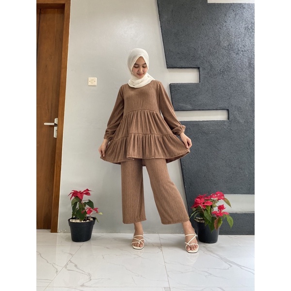 REZA SET BAHAN KNIT RIP IMPORT / SETELAN TERMURAH / SET WANITA SUPER BESTSELLER ( TERBARU )