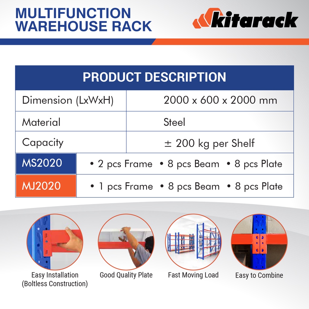 WAREHOUSE RACK KITARACK MS2020 2 METER RAK GUDANG LIGHT DUTY 4 TINGKAT