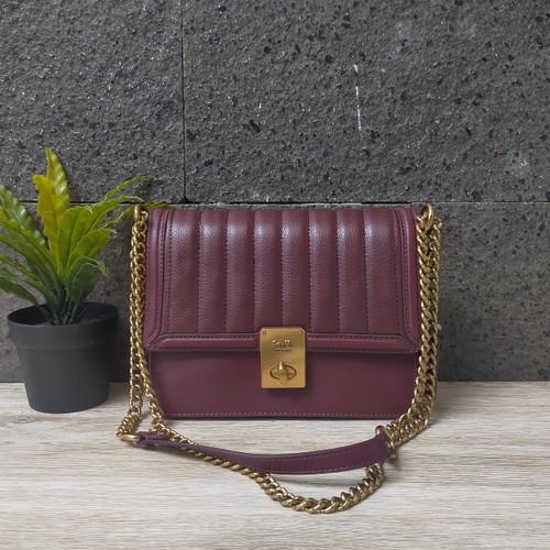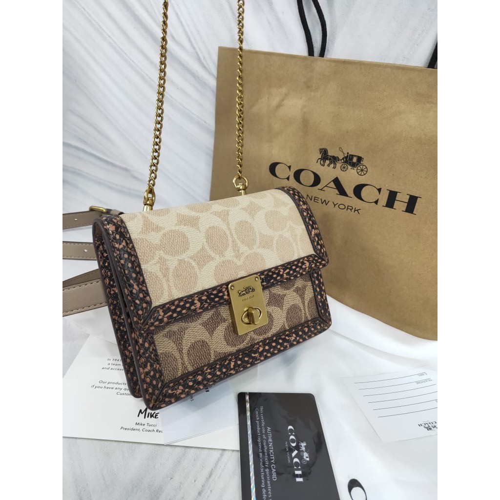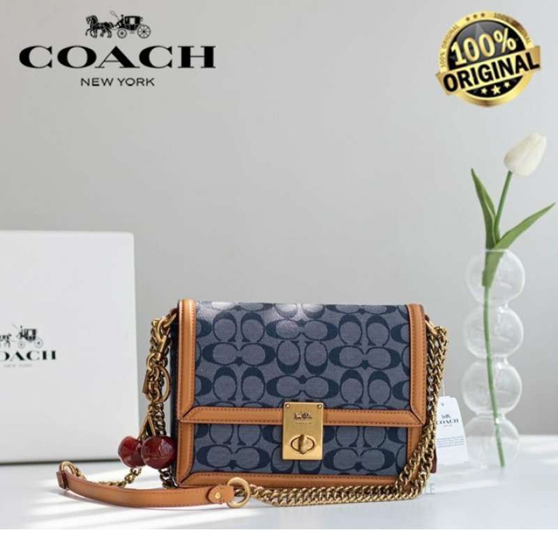 Coach Hutton Shoulder Bag in Signature Canvas Tas Selempang Wanita Tas Bahu Wanita