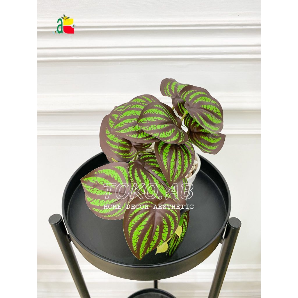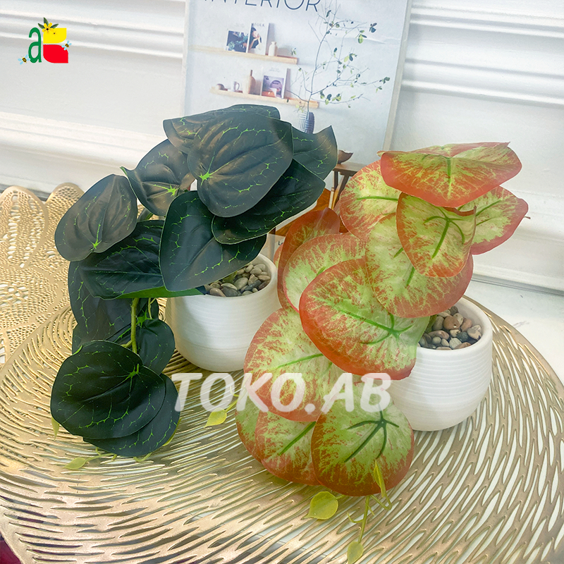RANGKAIAN BUNGA ARTIFICIAL PEPEROMIA POT PLASTIK RB6010 TANAMAN JUNTAI ARTIFICIAL DAUN PLASTIK DINDING