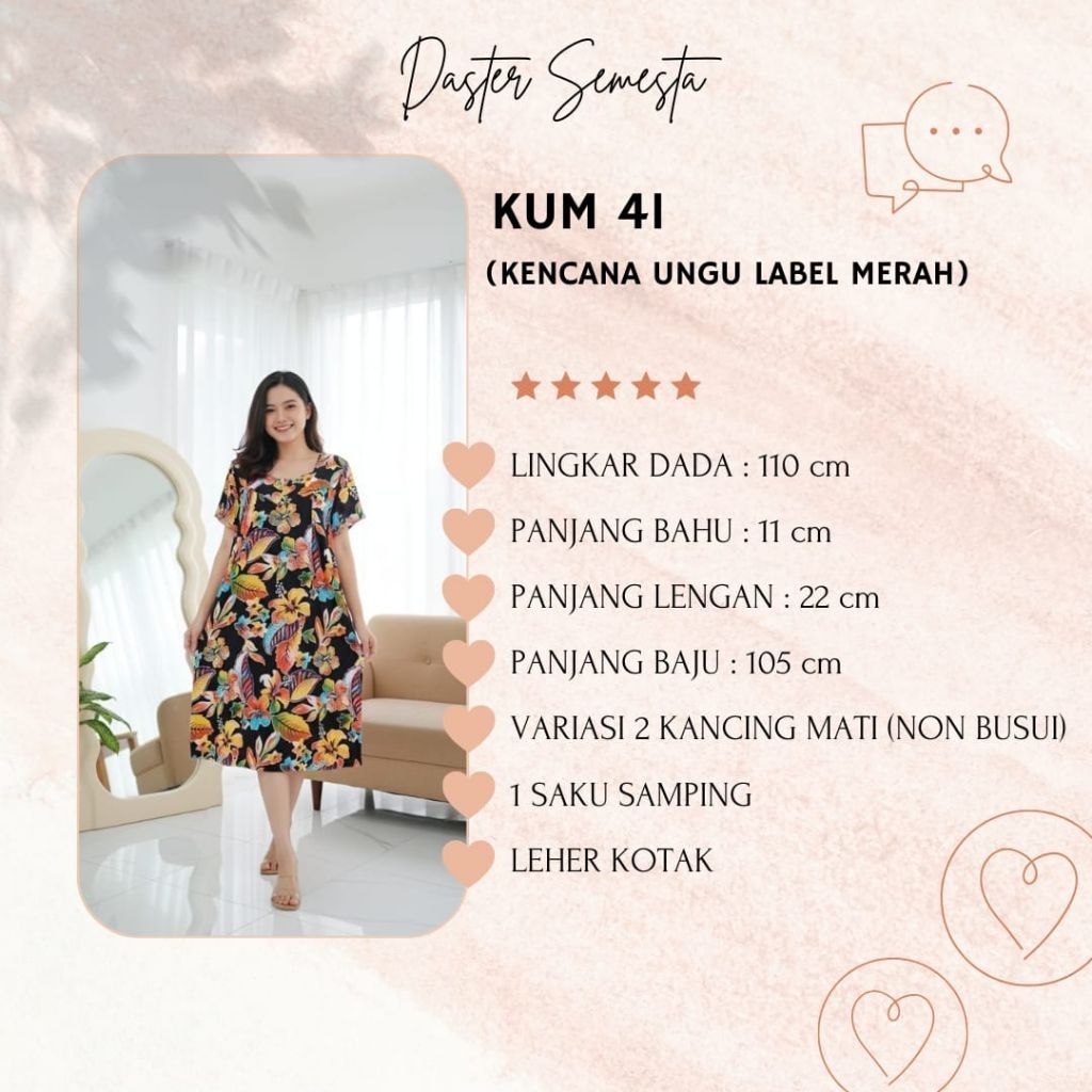 Daster Kencana Ungu Label Merah / KUM 04 LD: 112cm - KUM 30 LD: 110cm
