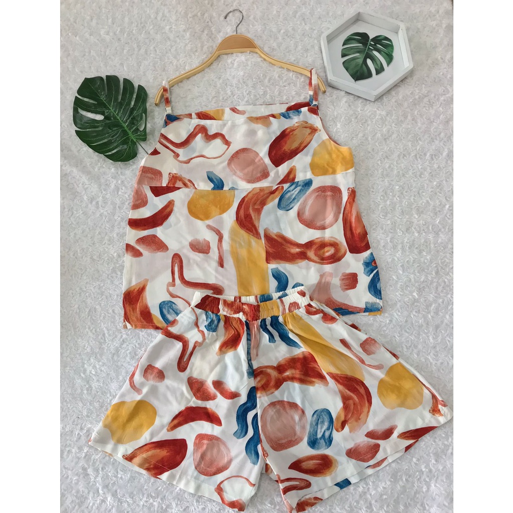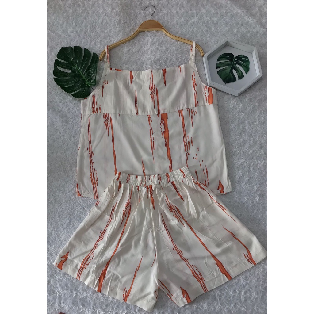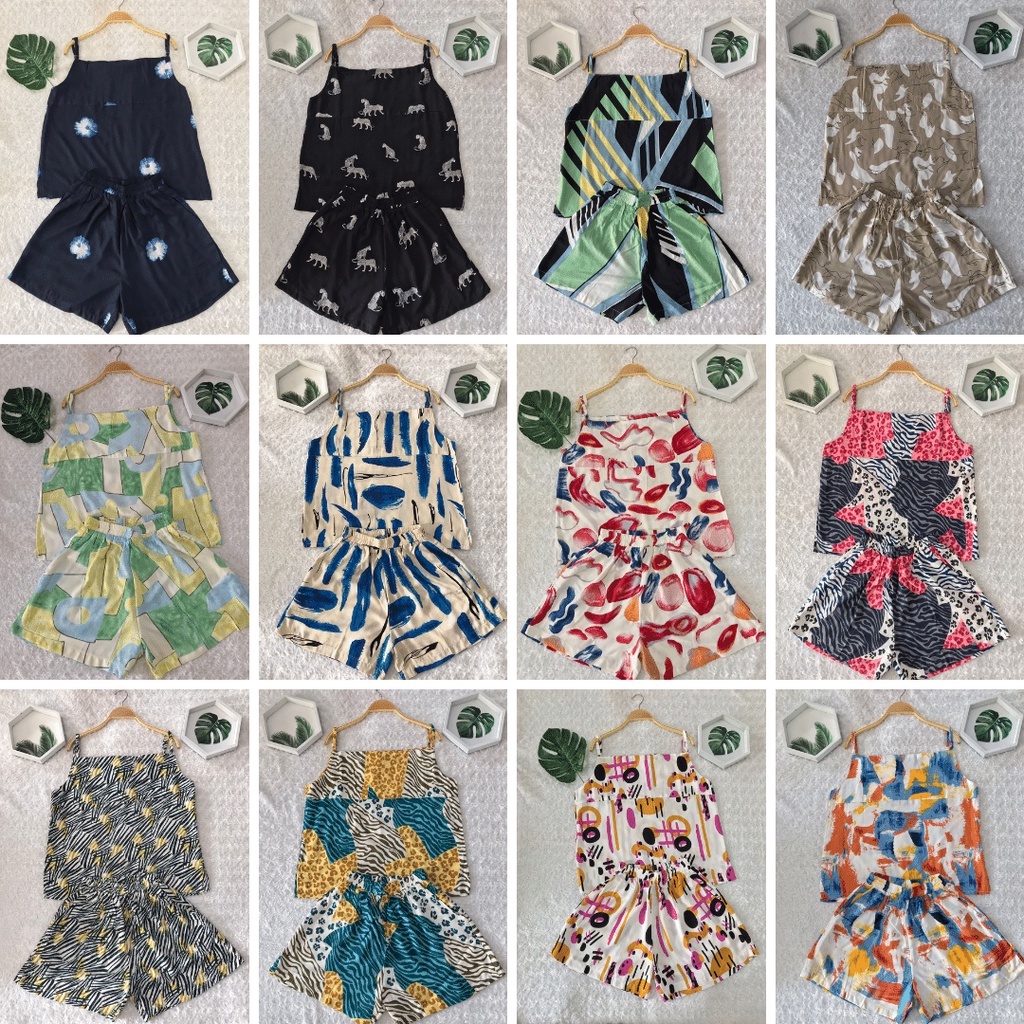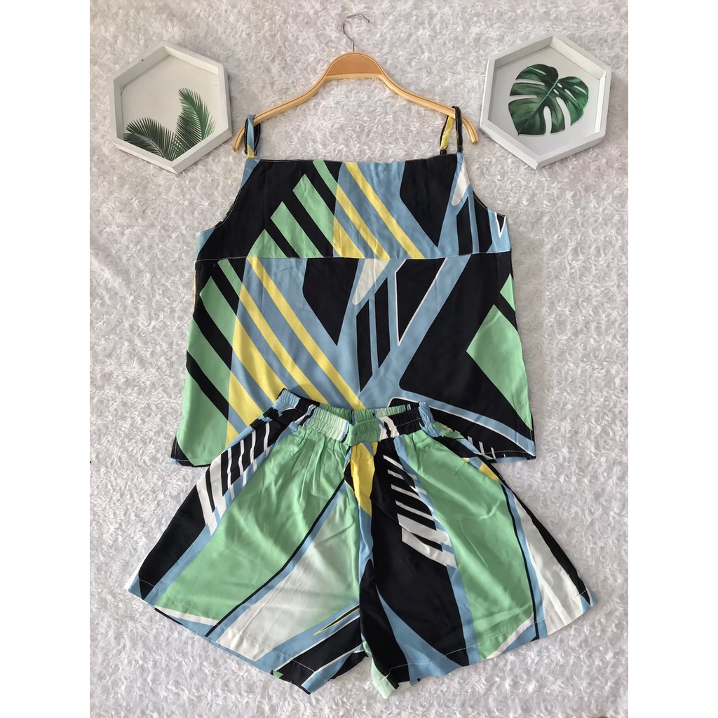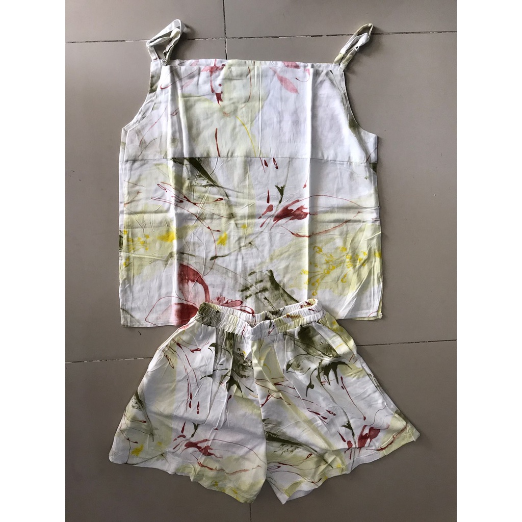 LimitedFashion Setelan Wanita Kekinian Rayon Tanktop One Set Rayon Setelan Baju Tidur Wanita TangTop