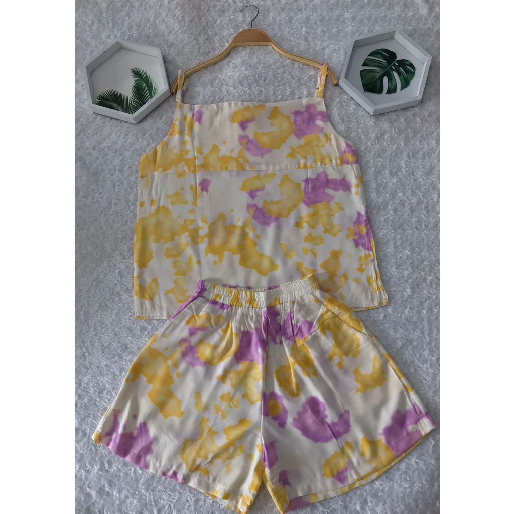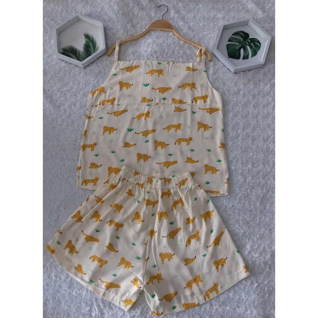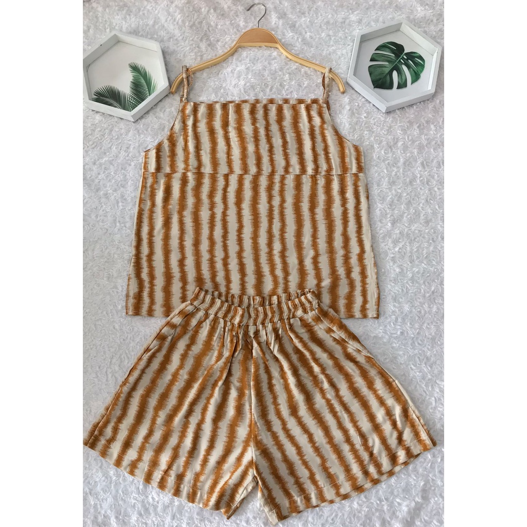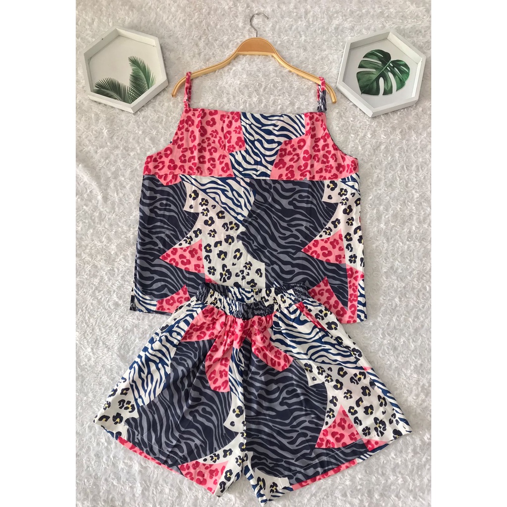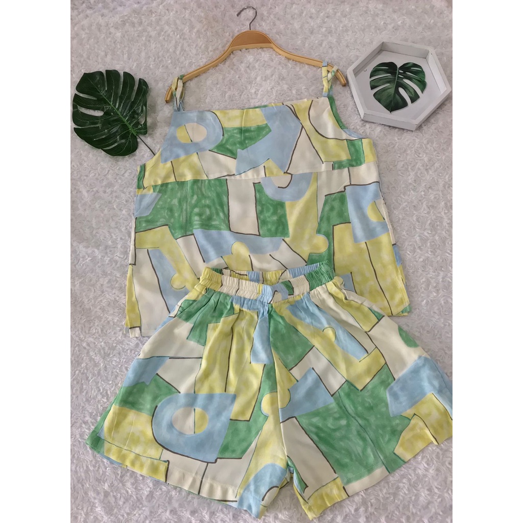 LimitedFashion Setelan Wanita Kekinian Rayon Tanktop One Set Rayon Setelan Baju Tidur Wanita TangTop