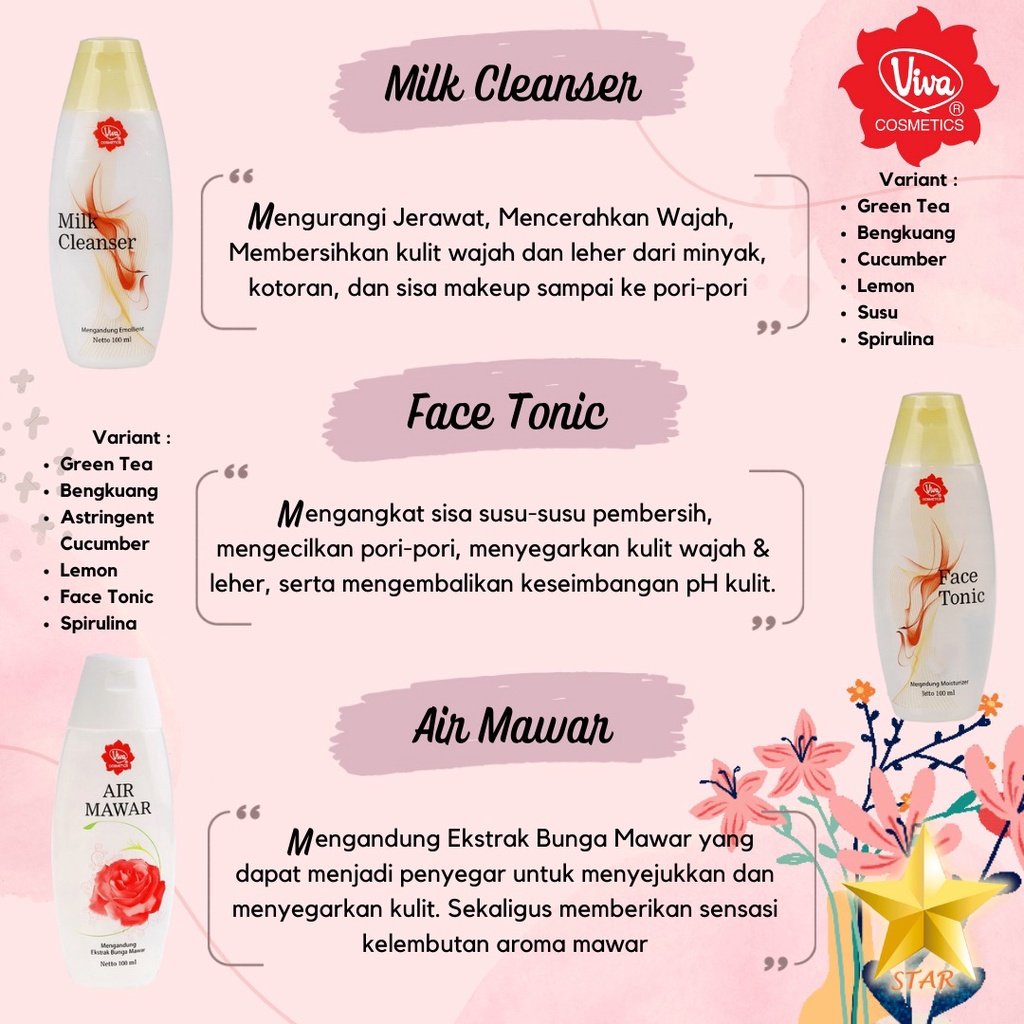 AS Viva Milk Cleanser & Face Tonic / Susu Pembersih / Penyegar Air Mawar Viva 100 mL