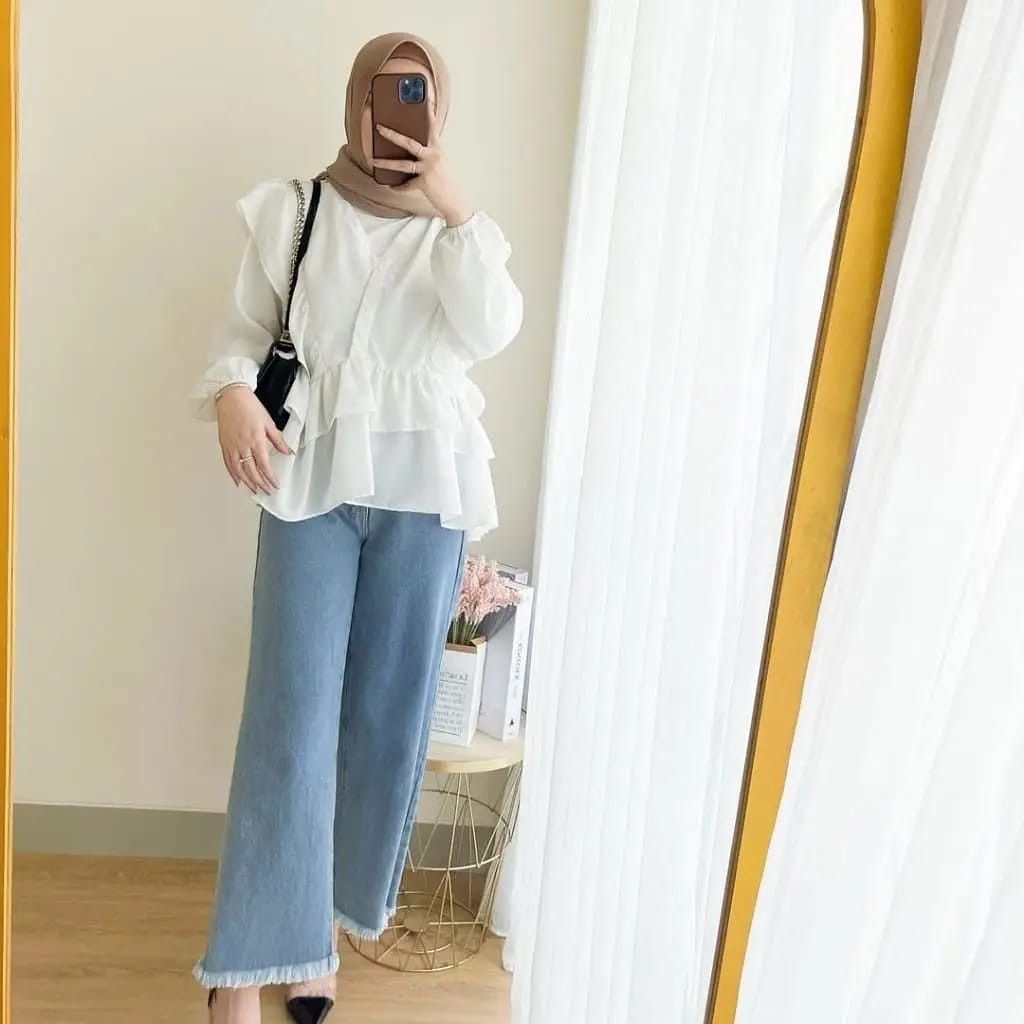 ALIA BLOUSE / blouse polos terbaru / atasan baju wanita kekinian / blouse hitam putih / baju kerja