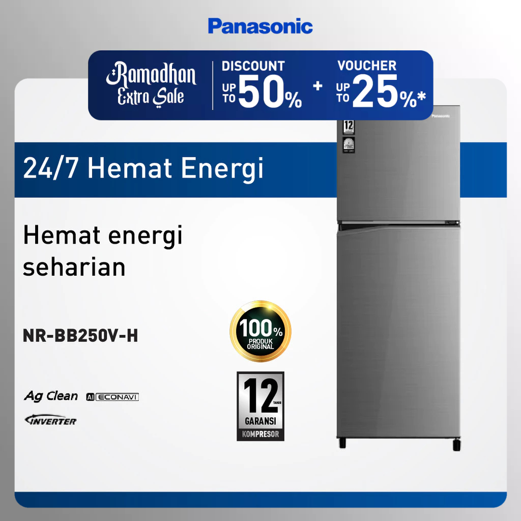 Panasonic NR-BB250V-H Kulkas 2 Pintu Top Freezer + Inverter - Grey