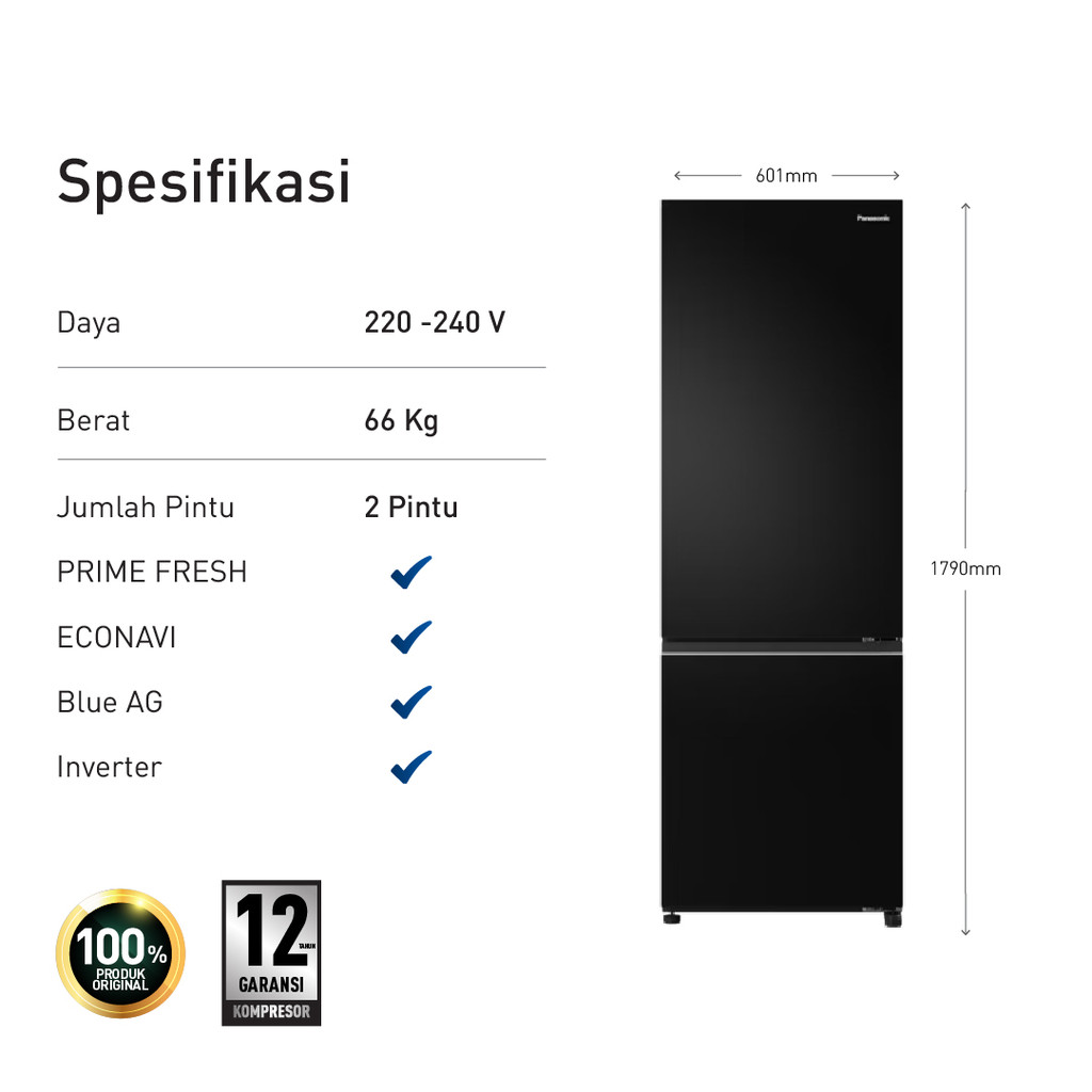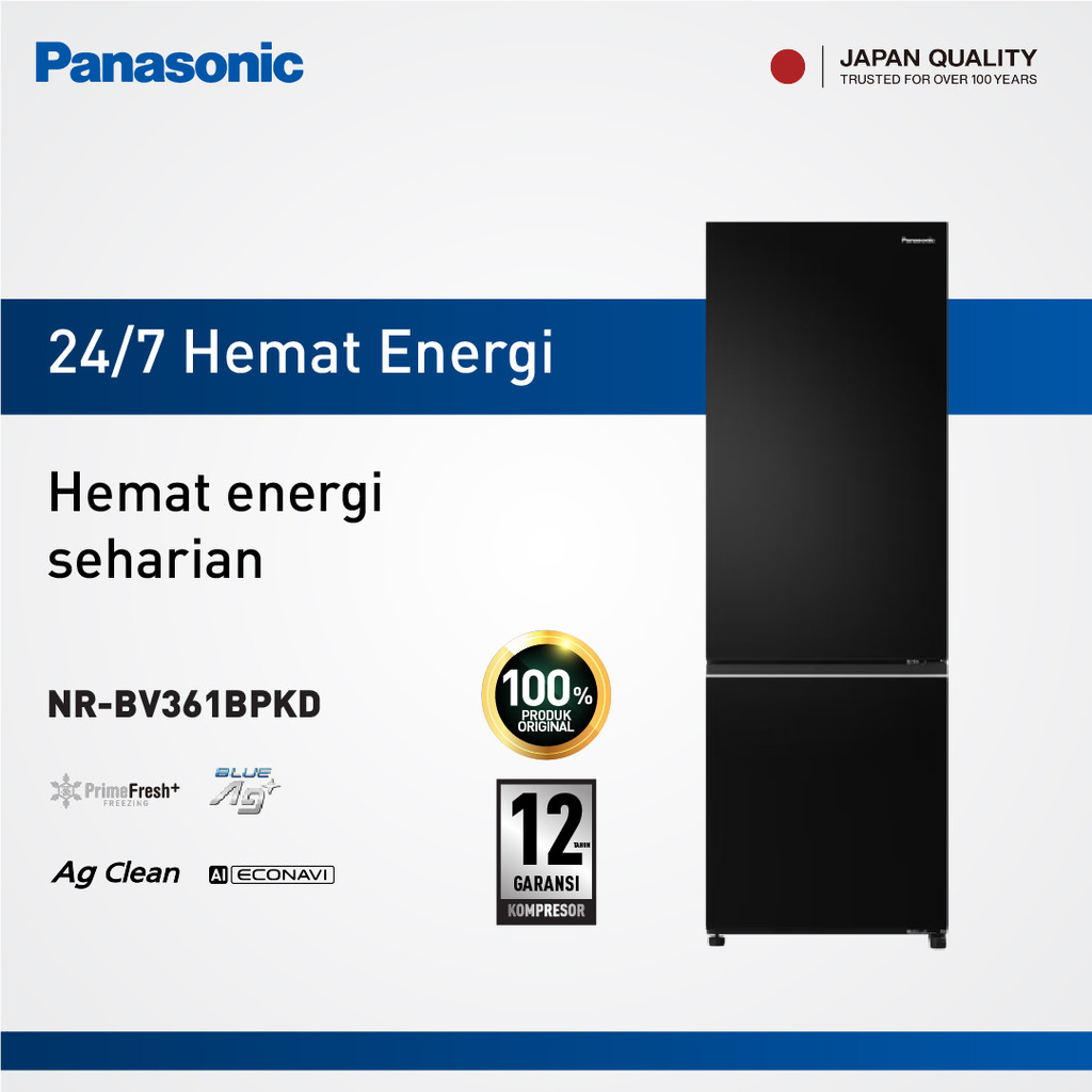 Panasonic NR-BV361BPKD Kulkas 2 Pintu Inverter + Prime Fresh - Black
