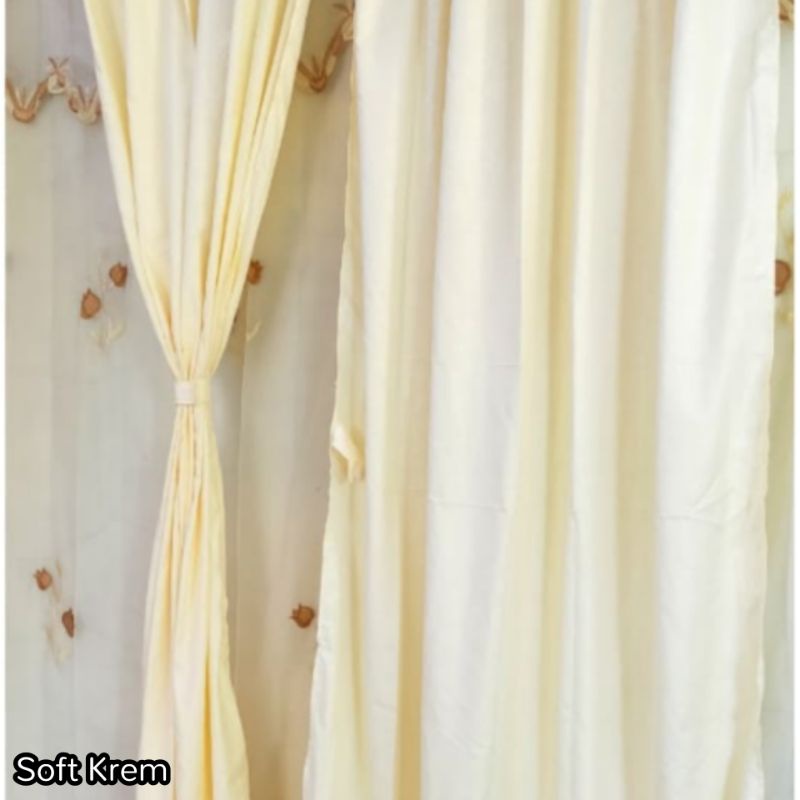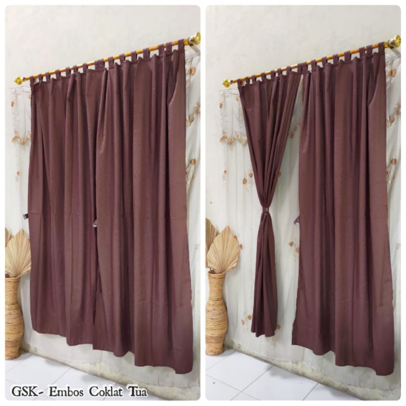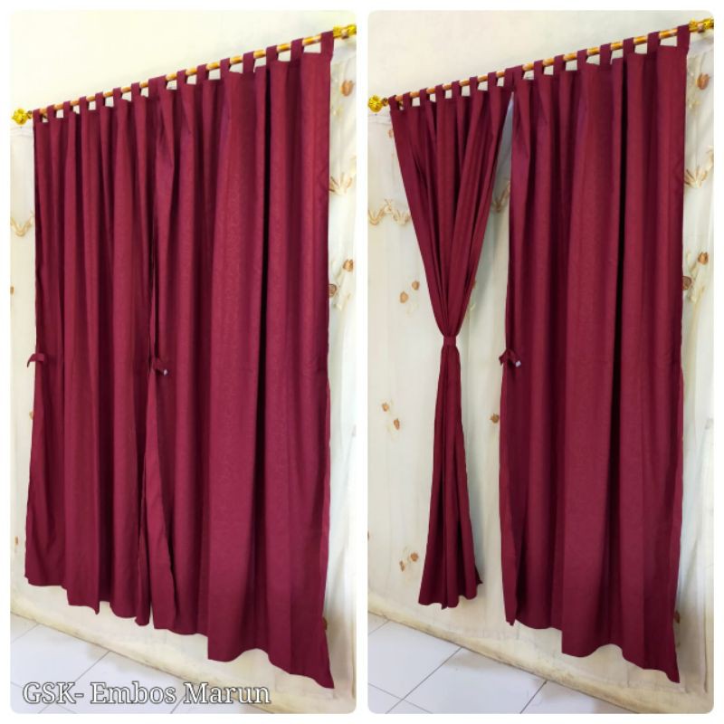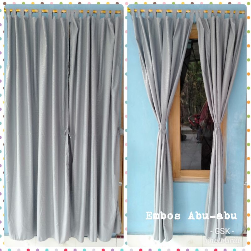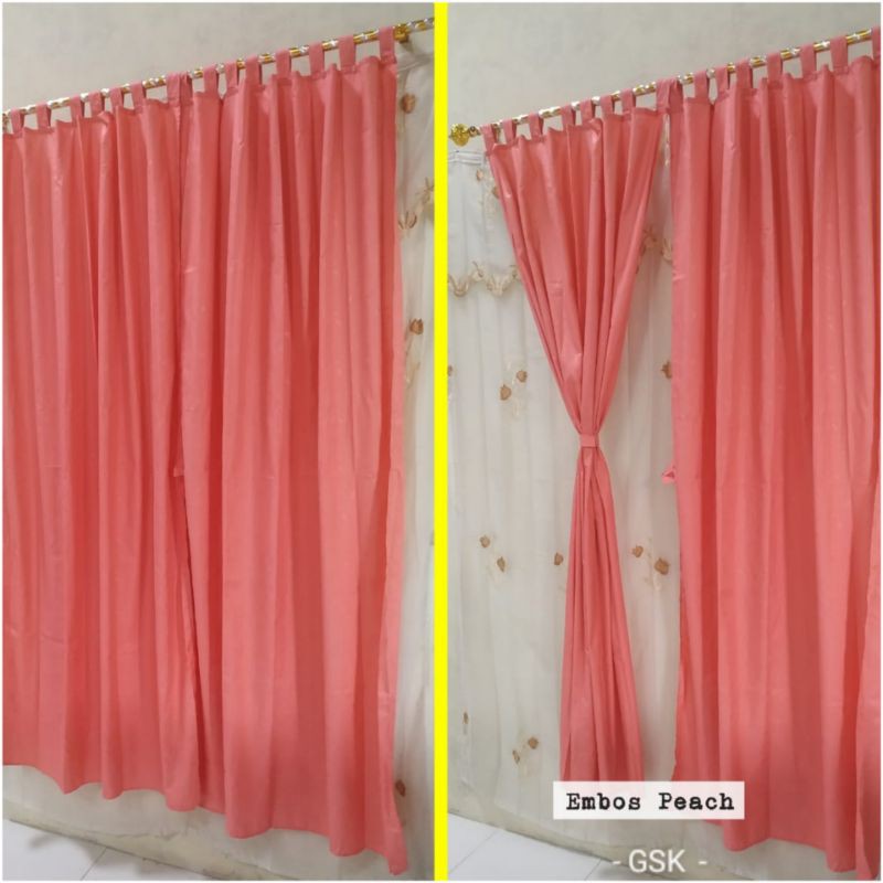 Tirai Gorden Pintu Jendela Kamar Minimalis Polos Embos Model Tali Perekat Tinggi 120 dan 200cm, Banyak Warna