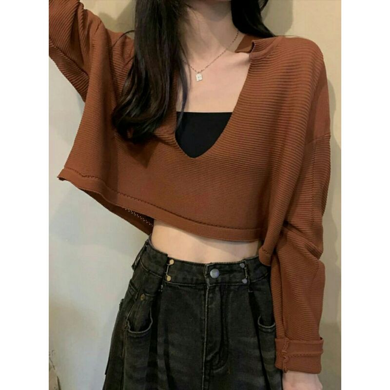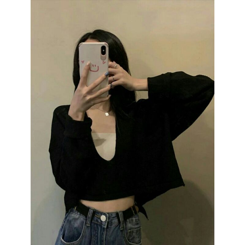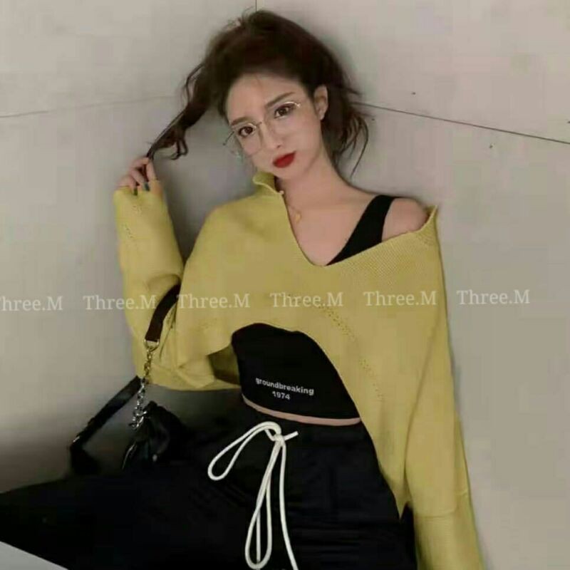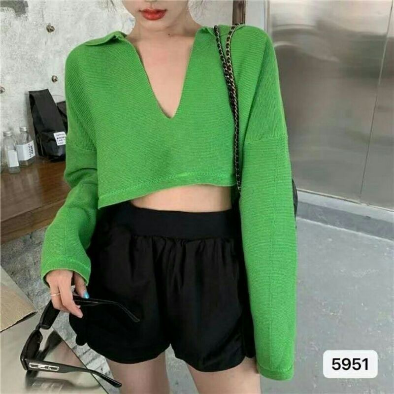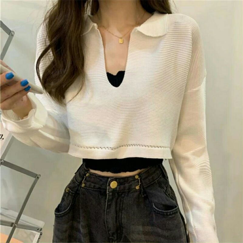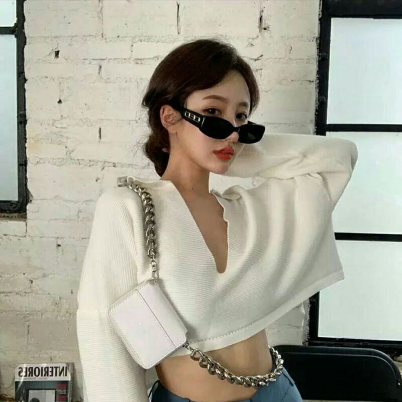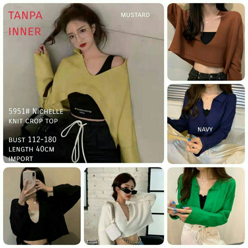 Michelle Baju atasan crop tops rajut knit cewek import baju crop top pendek wanita import kekinian