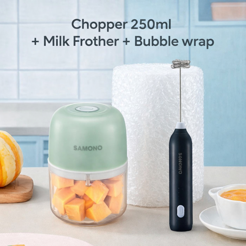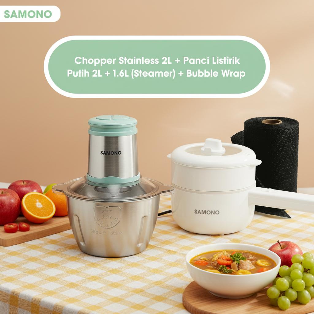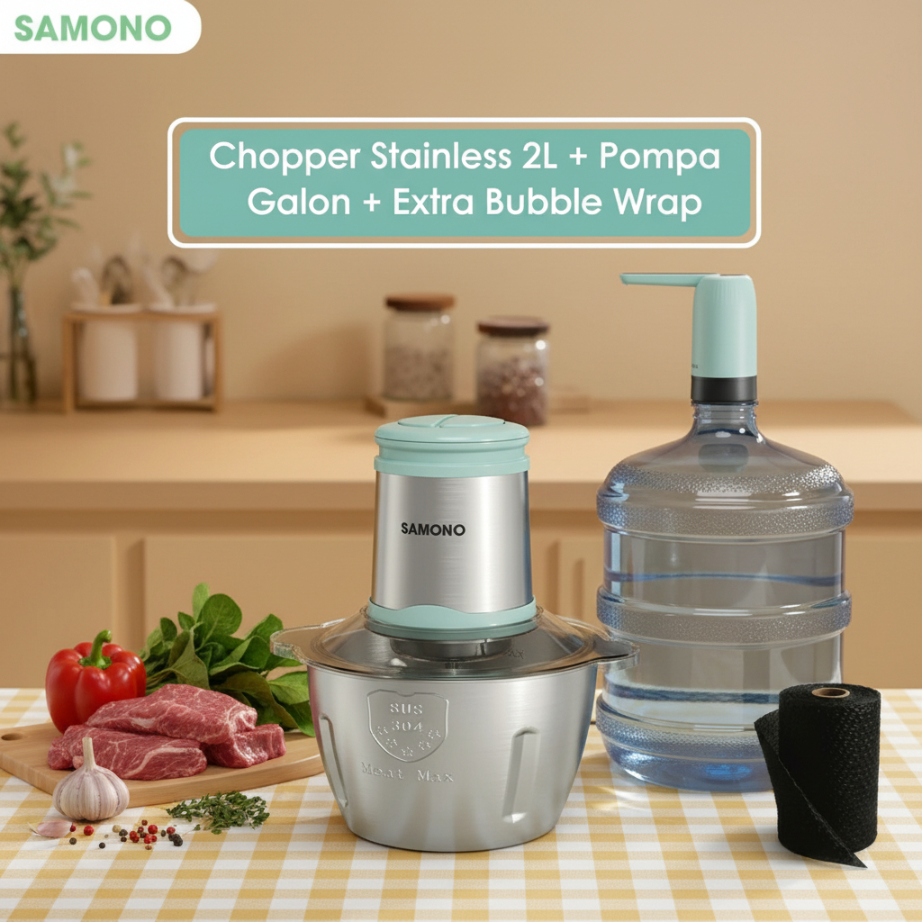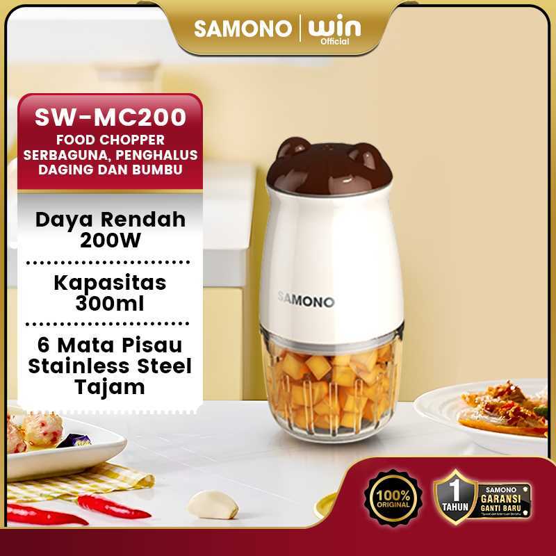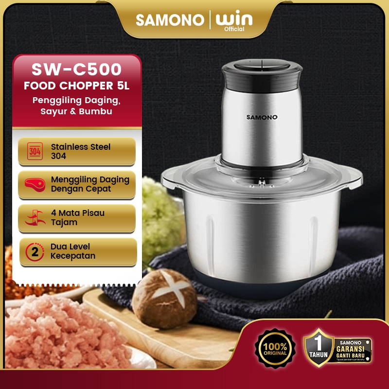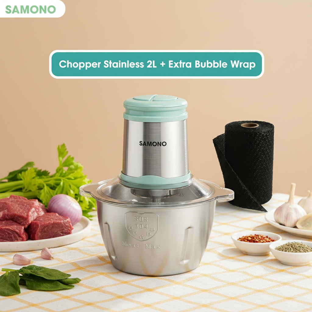 SAMONO Chopper Stainless Steel Low Watt 2L Coper Daging dan Bumbu Dapur Multifungsi Blender Choper Penghalus Penggiling Food Processor Premium 4 Mata Pisau Tajam SW-CL350