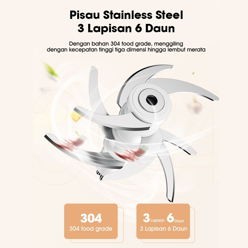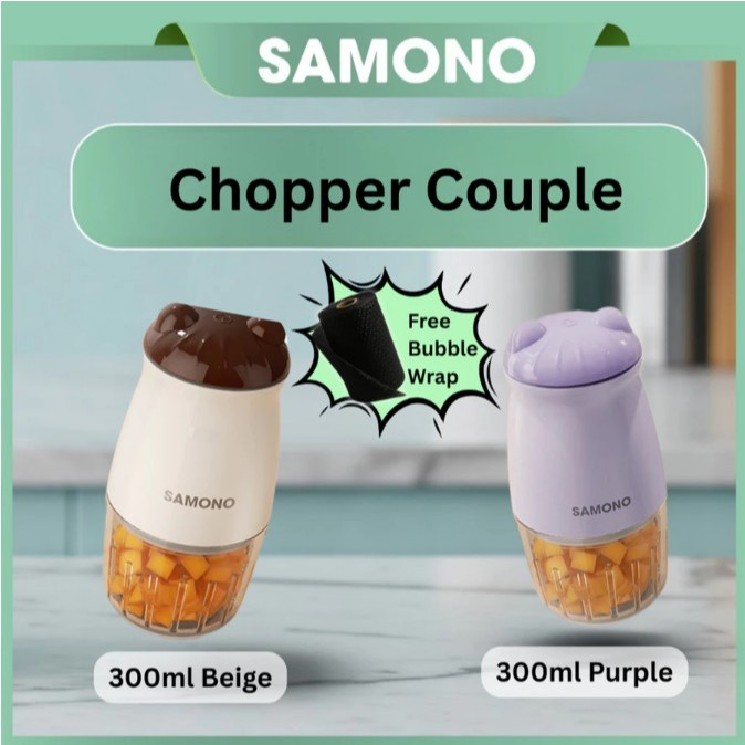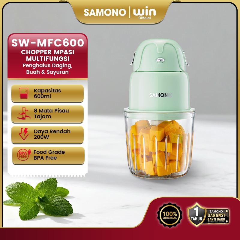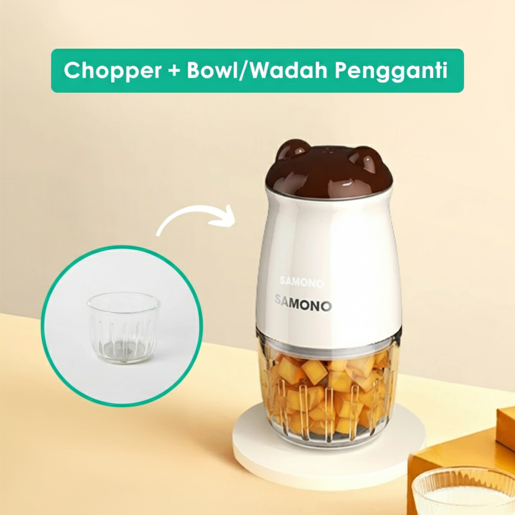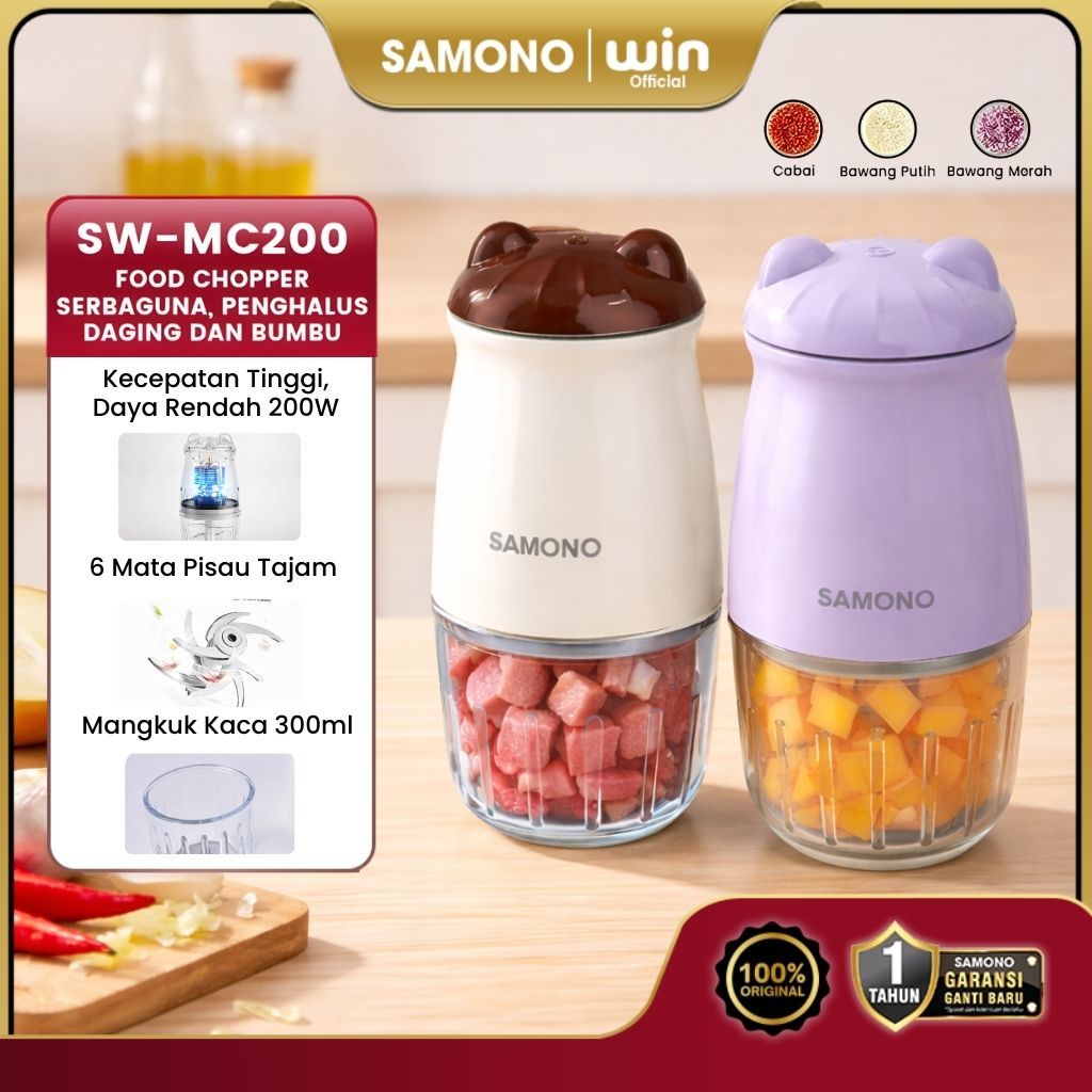 SAMONO Chopper Elektrik 300ml Mini Coper Daging dan Bumbu Low Watt 200W Blender Portable Choper Multifungsi Food Processor Penghalus Penggiling Bawang Cabai 6 Mata Pisau SW-MC200 Garansi Resmi