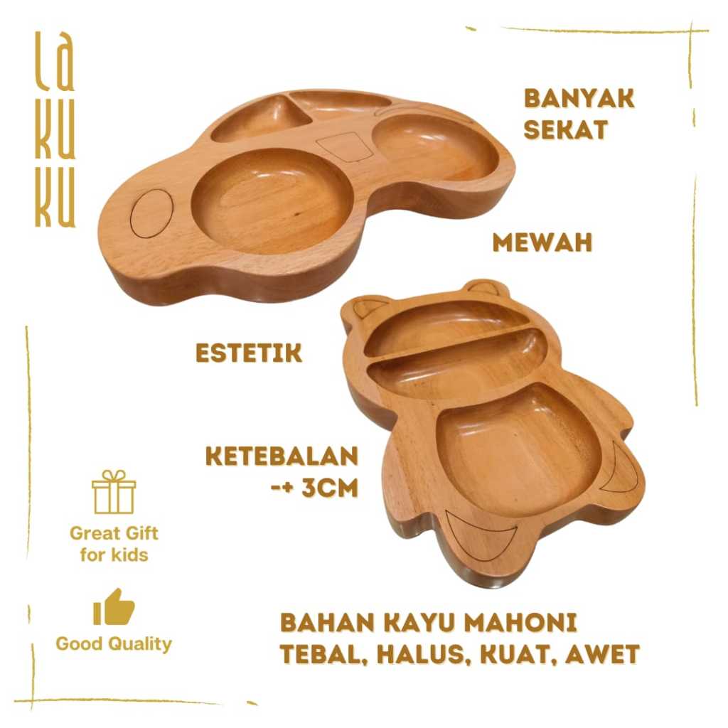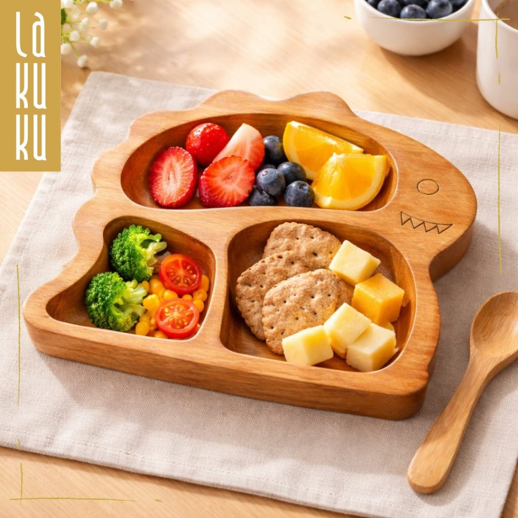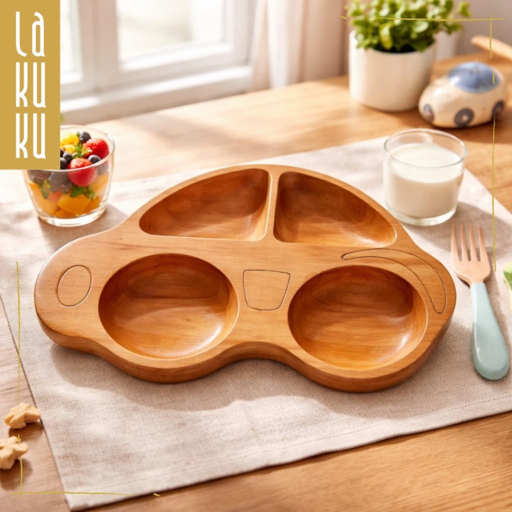 Lakuku - Piring Makan Anak Bahan Kayu Tebal Bentuk Lucu dan Estetik