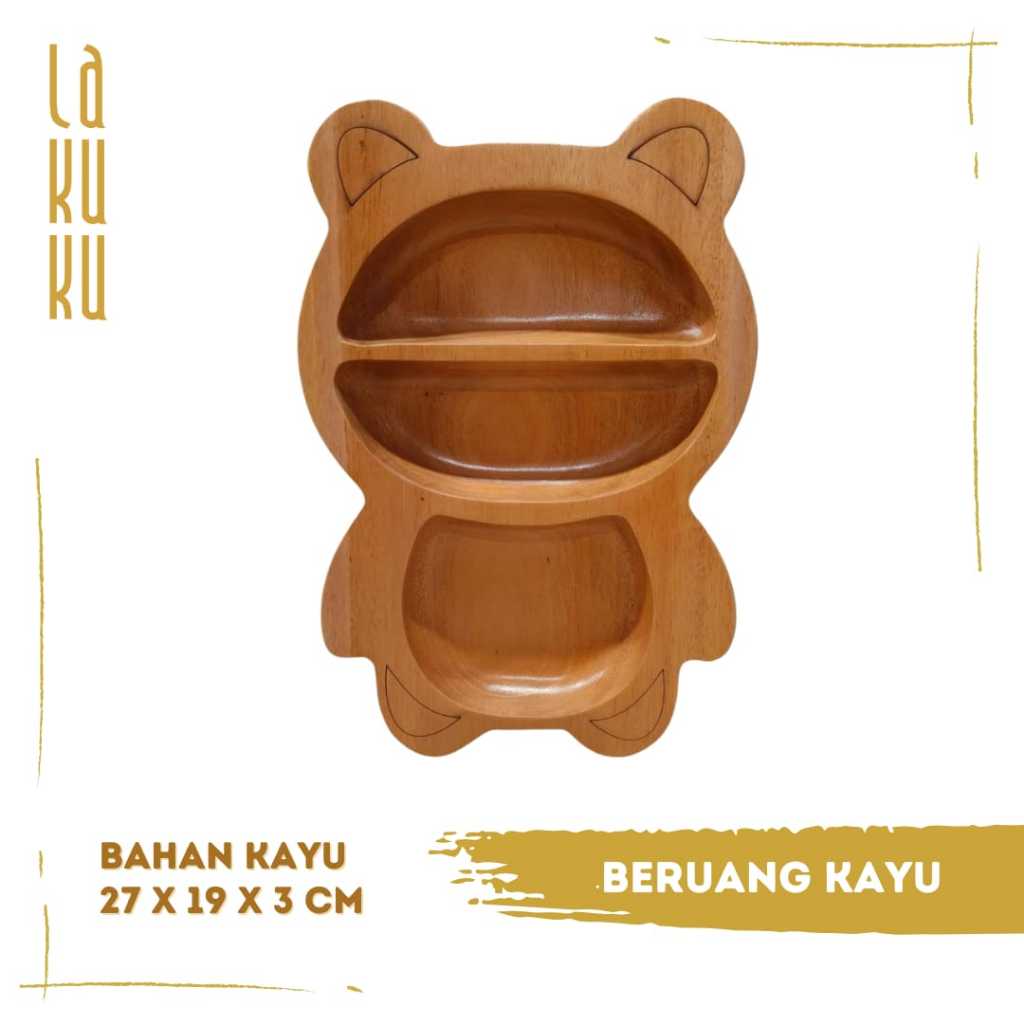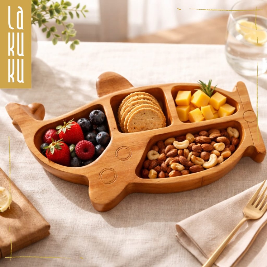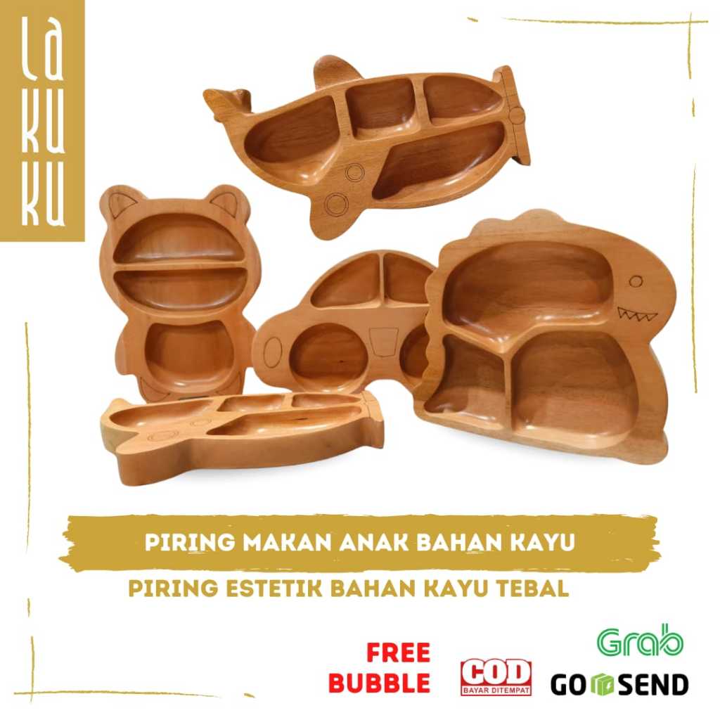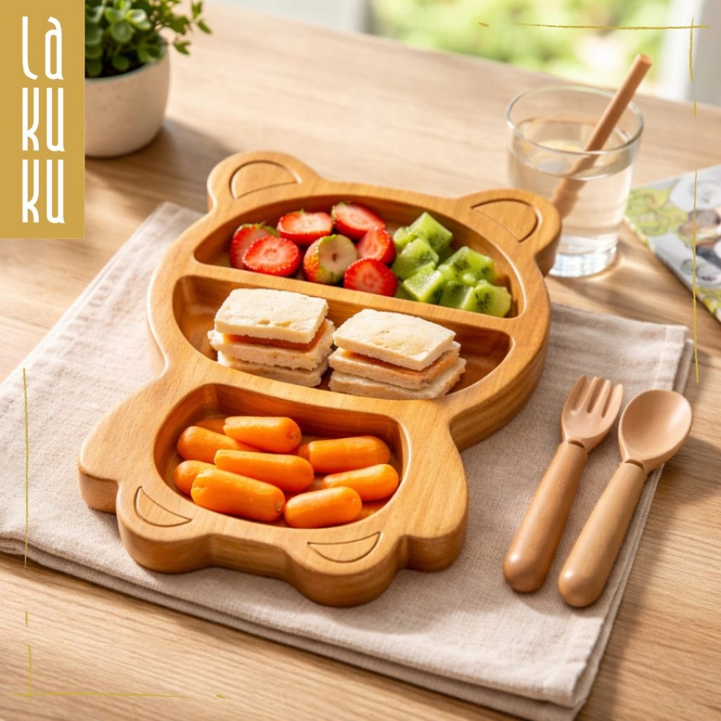 Lakuku - Piring Makan Anak Bahan Kayu Tebal Bentuk Lucu dan Estetik