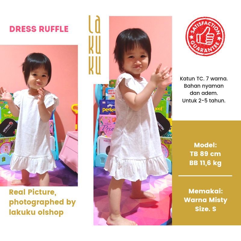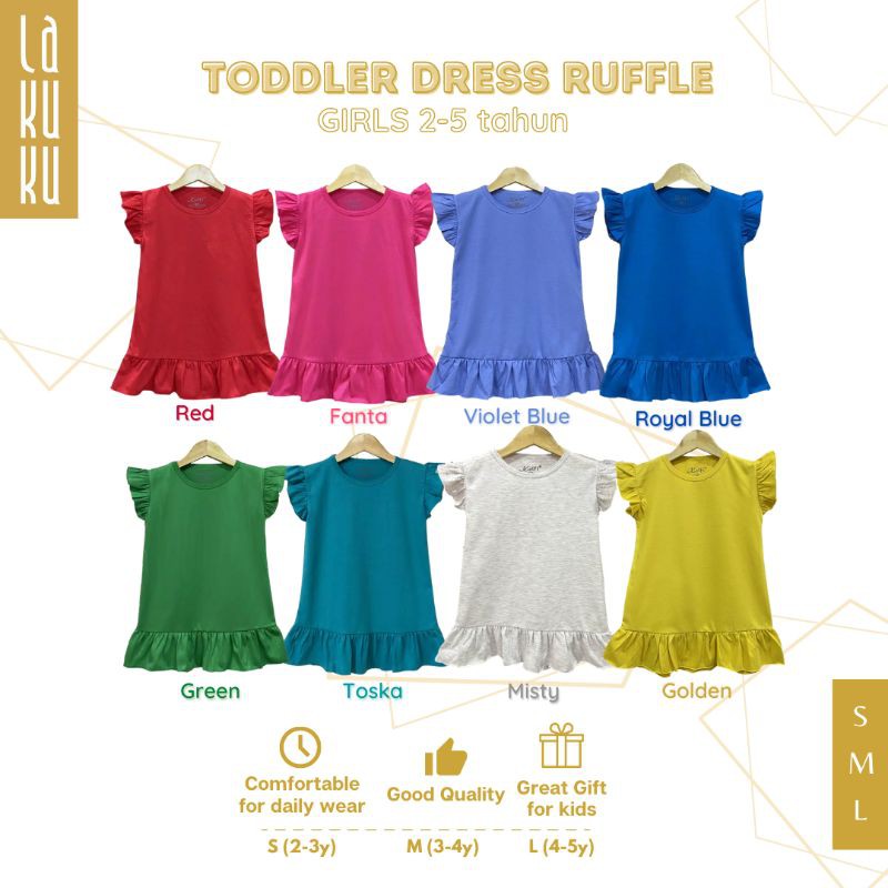 Dress Ruffle anak perempuan 2-5 tahun Setelan Pakaian Baju Rok Anak Polos Warna