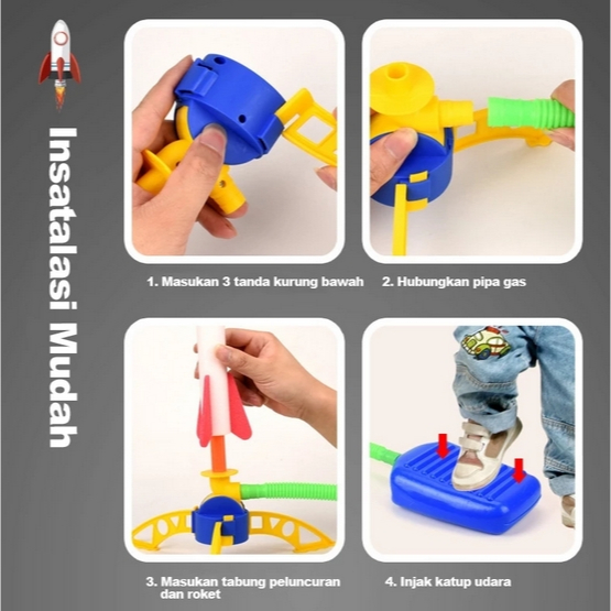 JK Mainan Anak Peluncur Roket Set Permainan Olahraga Luar Ruangan Mainan Menginjak Pedal Roket Terbang Udara