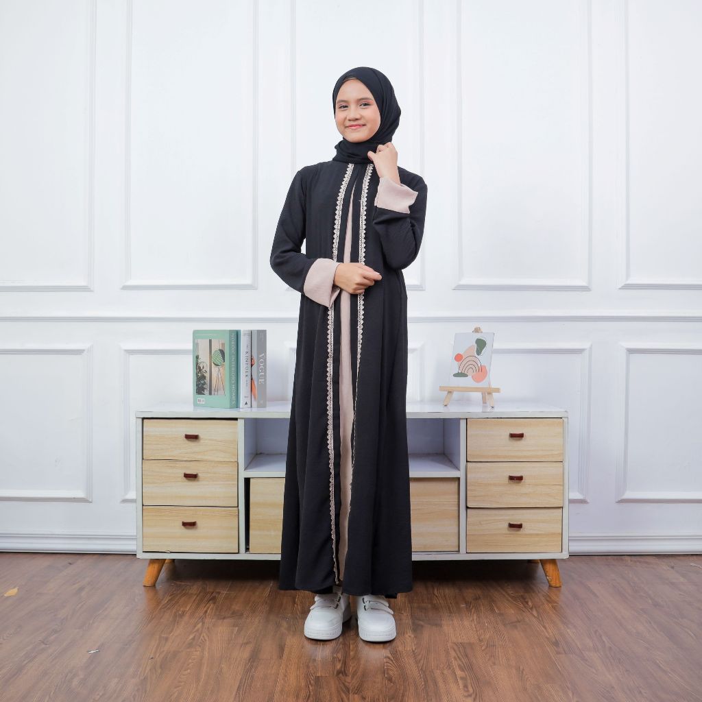 Abaya remaja aesthetic viral gamis anak perempuan terbaru usia 6-8 9-12 13-16 tahun bahan crinkle