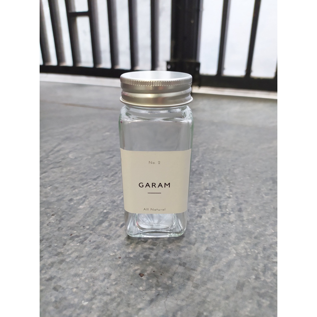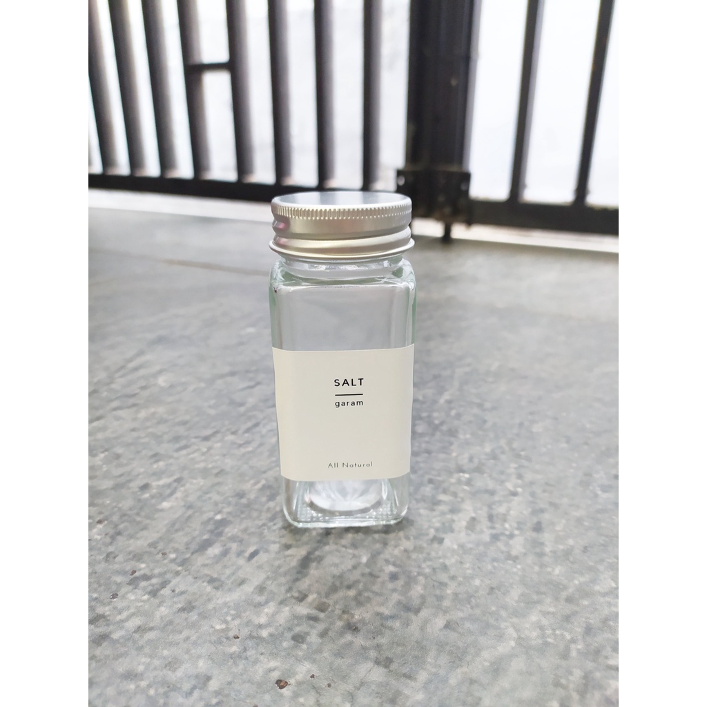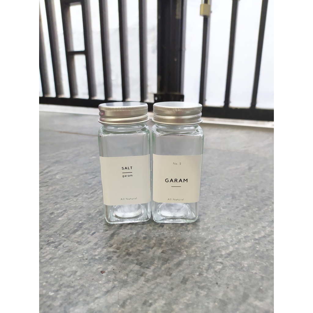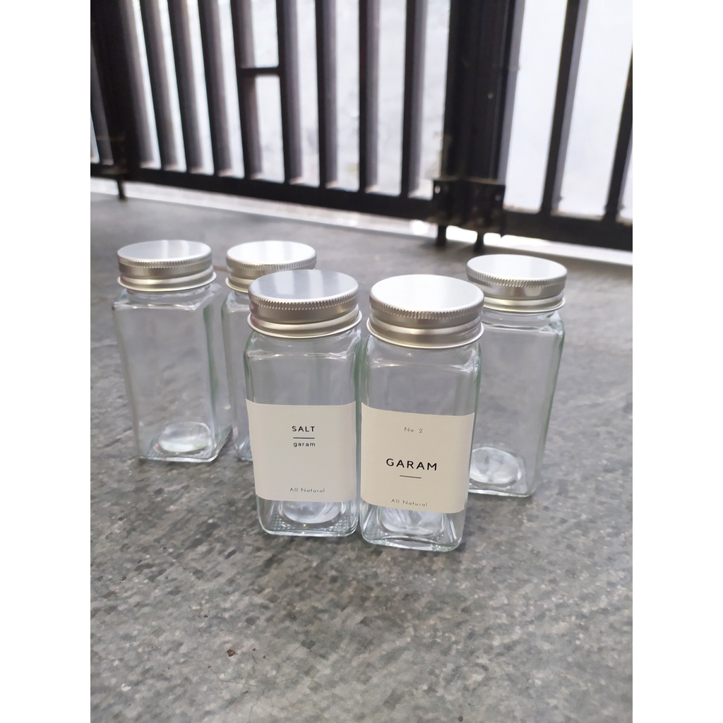 Toples bumbu kotak kaca 110ml - tempat bumbu free label minimalis