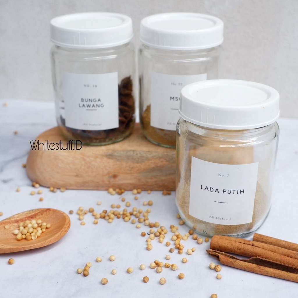 Toples Bumbu Dapur Kaca 250ml free label minimalis dan free sendok
