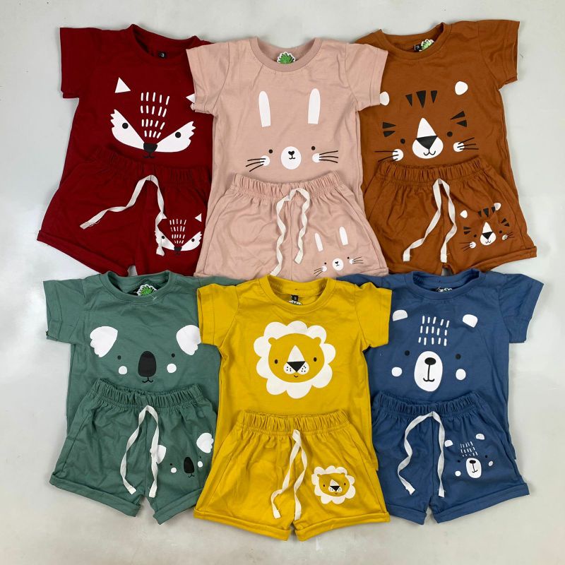 BISA COD (Mabelima setelan kaos) Kaos setelan anak cowok laki laki gambar hewan singa lion fox rubah beruang bear koala tiger harimau kelinci bunny baju setelan anak usia umur 3 4 5 6 7 8 9 10 11 12 bulan 1 2 3 4 5 tahun piyama anak setelan anak pineapple