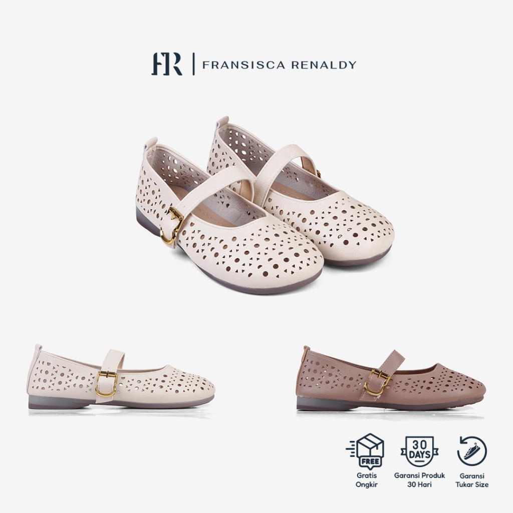 Fransisca Renaldy Flatshoes Wanita Mary Jane Motif Laser Cut Ringan Size 36-40 L.Kujou