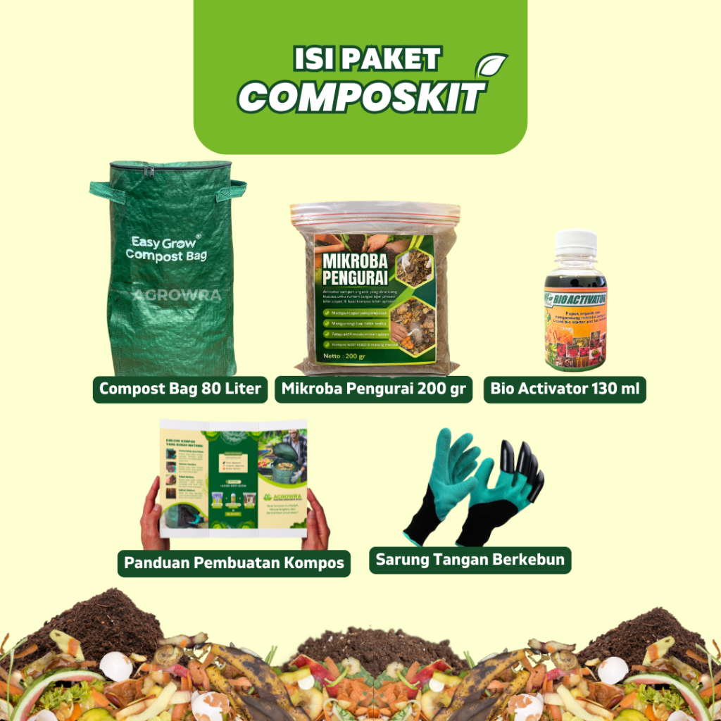COMPOSTKIT Paket Komposter Lengkap Compost Bag 80 Liter Easy Grow Bio Ecompost Tas Alat Pengomposan Rumah Tangga