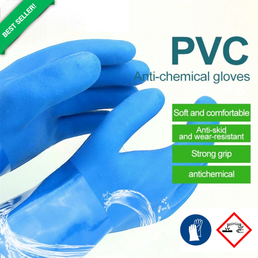 PILAR SARUNG TANGAN PVC BIRU KIMIA 12" CHEMICAL INDUSTRI SAFETY GLOVES BLUE