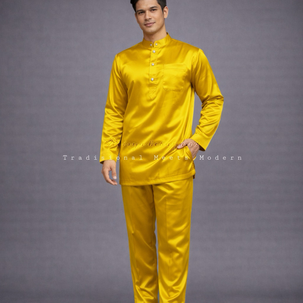 Setelan Teluk Belanga Pria Set Baju Melayu Pria-Baju Koko Melayu Set Celana